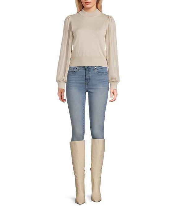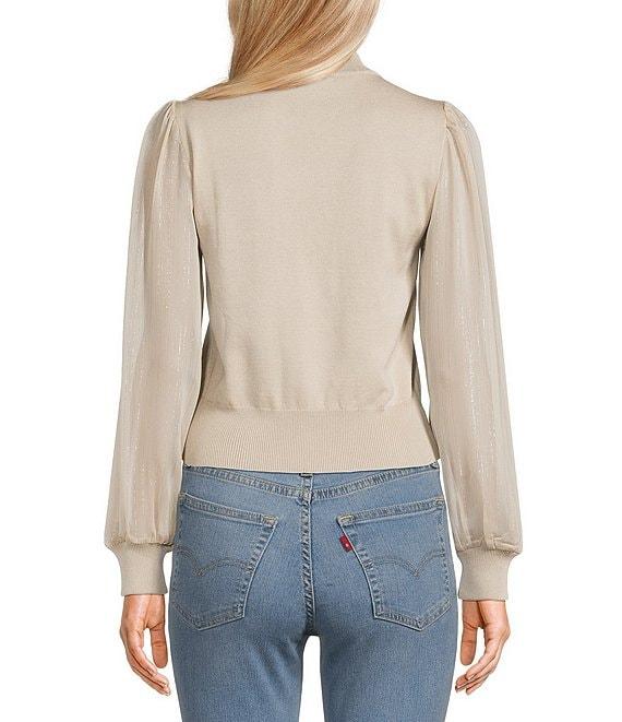 I.N. San Francisco Metallic Mock Neck Long Puff Sleeve Sweater