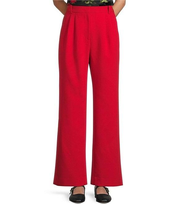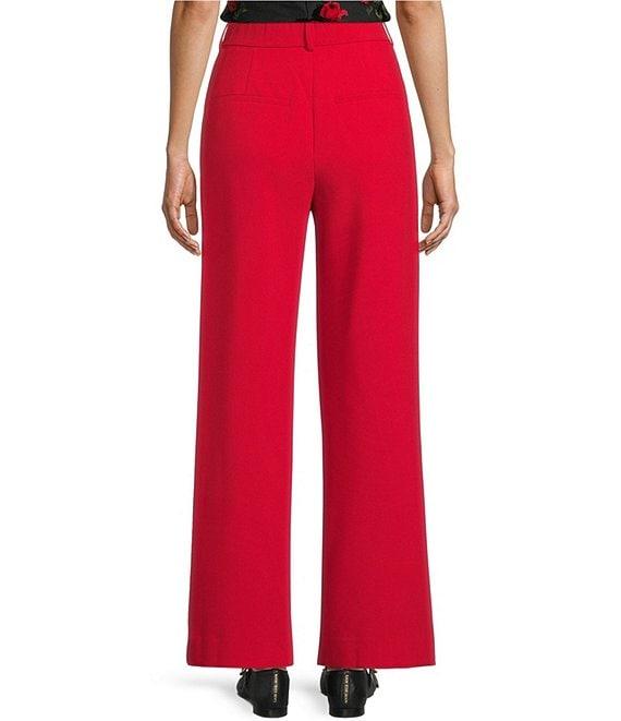 From I.N. San Francisco, these pants feature: Mid-rise Pull-on styling Belt loops Twill front Tailored fit 30" inseam Wide legs Polyester/rayon/spandex Machine wash/line dry Imported.
