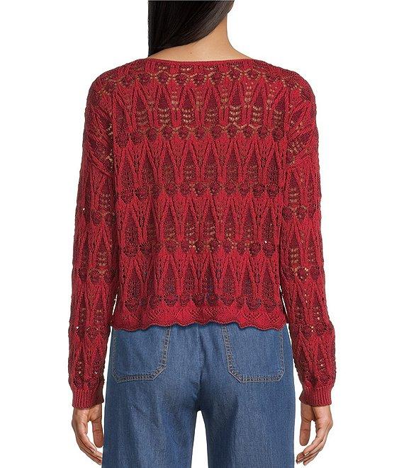 I.N. San Francisco Pointelle V-Neck Long Sleeve Scallop Hem Sweater