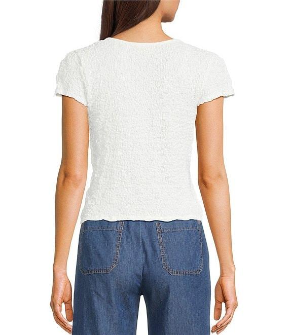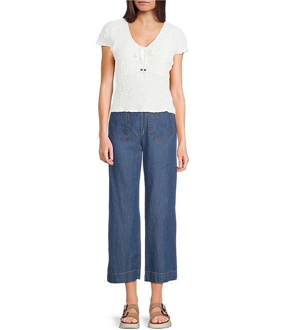 I.N. San Francisco V-Neck Shirred Tie Front Short Sleeve Top