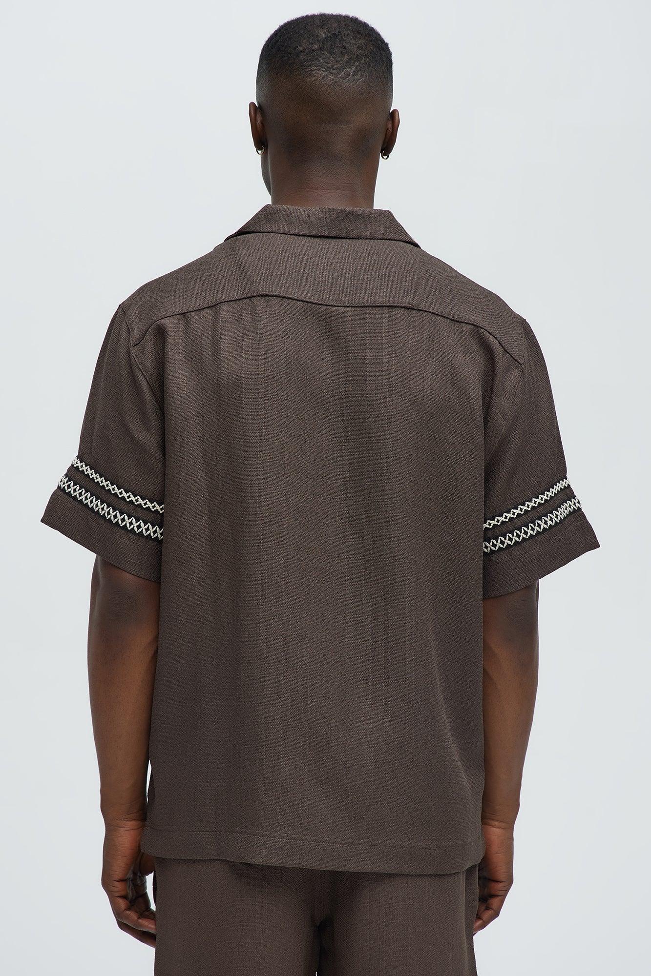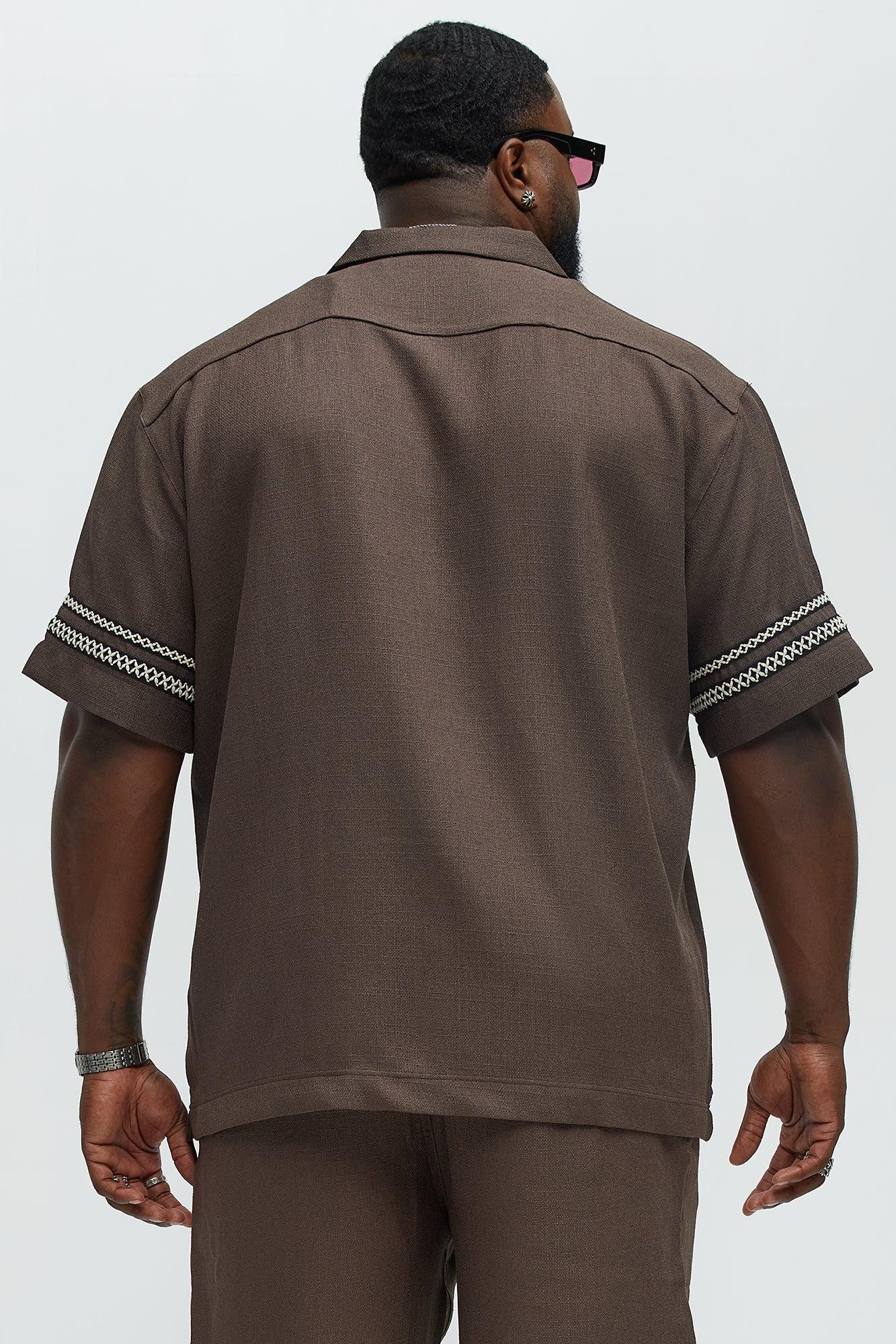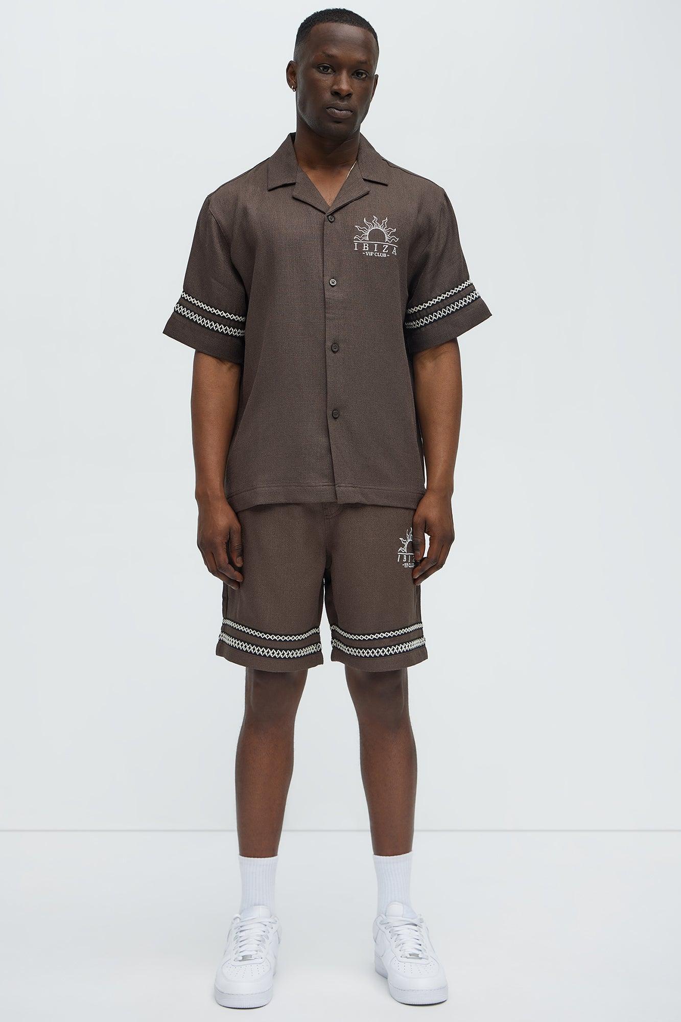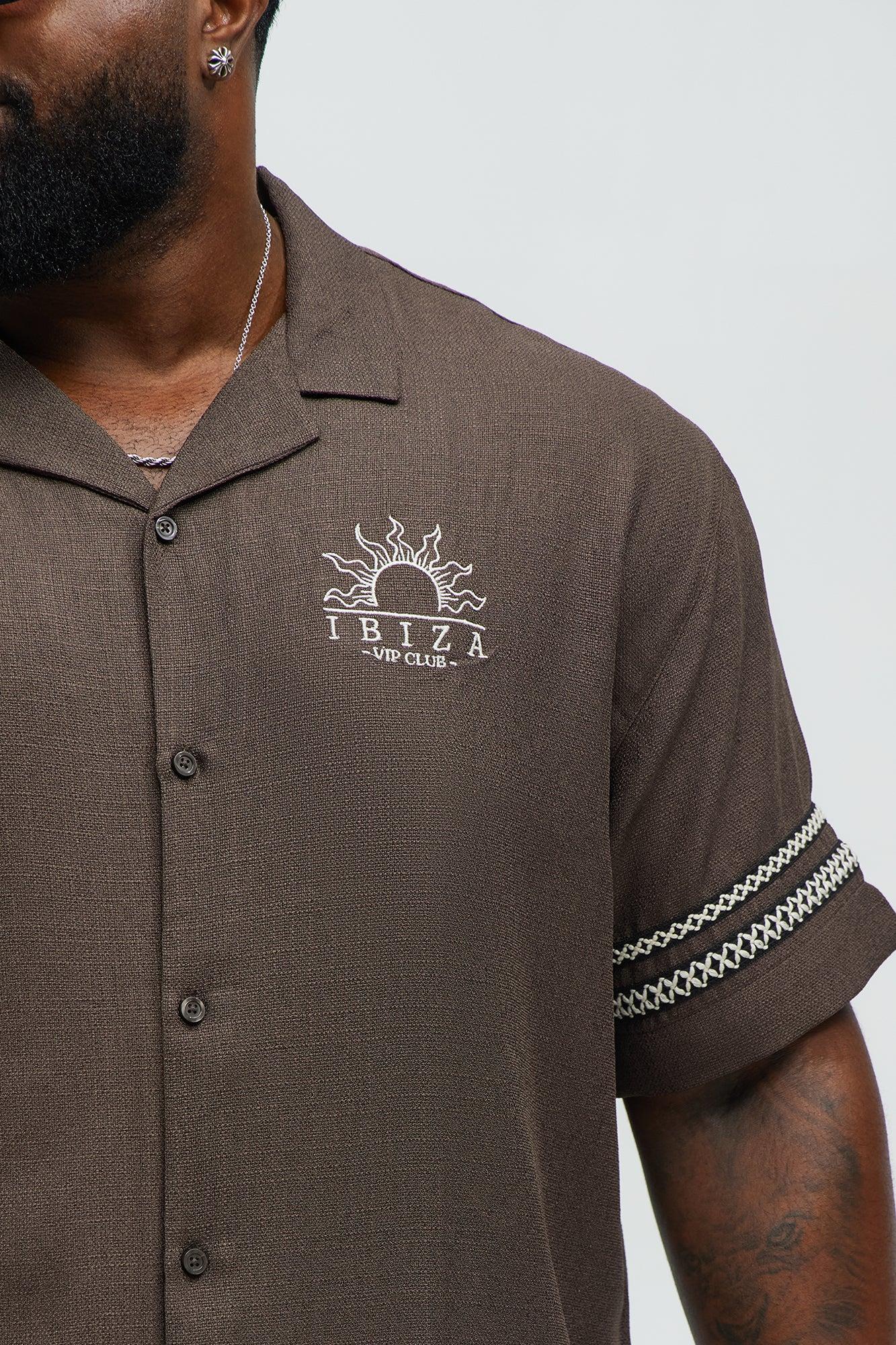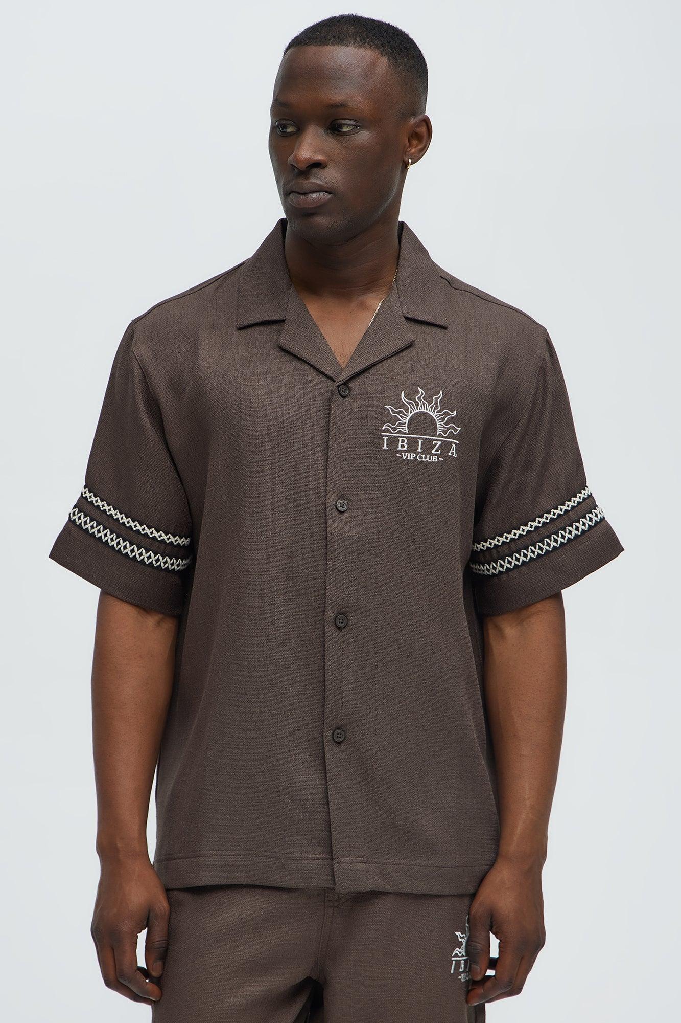 Ibiza VIP Club Linen Like Button Up - Chocolate Male