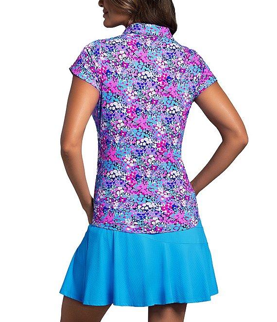 From IBKUL, this polo features: IceFil Cooling Technology fabrication Floral print Short tulip sleeve Collared neckline Pull on construction Front zip placket Moisture wicking Anti-microbial UPF 50 Sun Protection Nylon/Polyurethane Machine wash cold/ tumble dry low Imported.