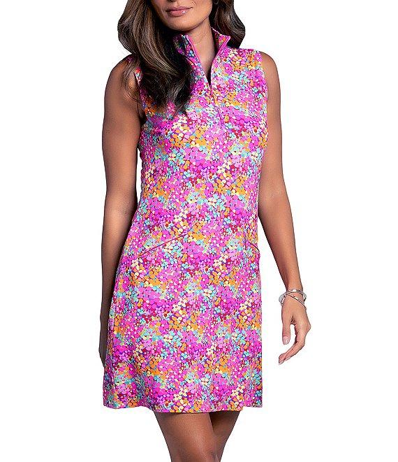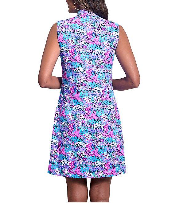 From IBKUL, this dress features: Patented Icefil technology fabrication Floral print Mock neckline Sleeveless Pull-over construction Zip front placket Lightweight UPF 50+ protection Anti-microbial Straight hemline Above the knee length Nylon/Polyurethane Machine wash cold, Tumble dry low Imported.