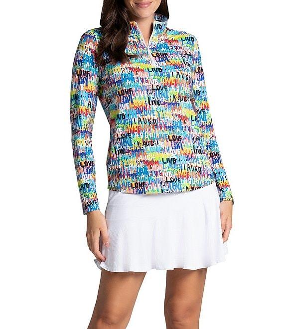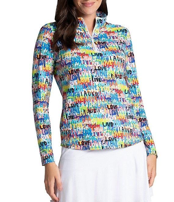 From IBKUL, this top features: Love graphic print Zip mock neckline Long sleeve Pullover construction Patented iceƒil technology converts your own sweat to lower your temperature by up to five degrees. Mesh underarm panels Moisture-wicking UPF 50 Anti-microbial Nylon, Polyurethane Machine washable Imported.