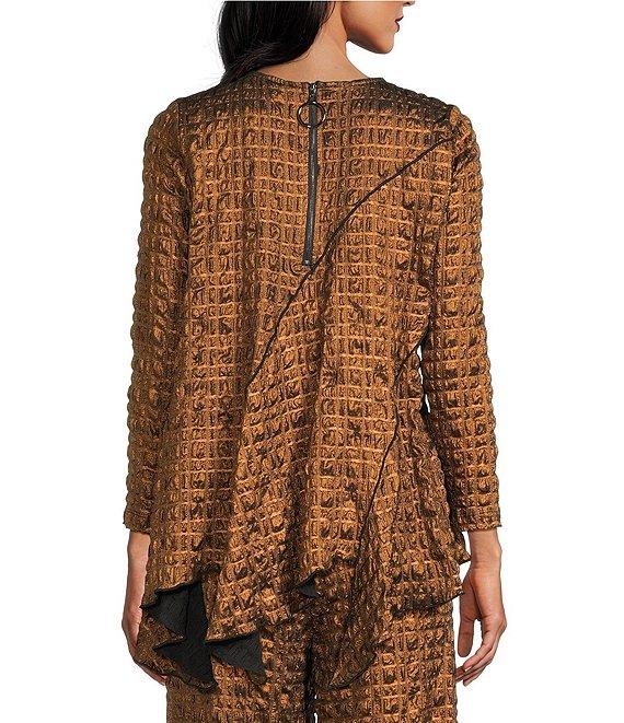 IC Collection Coordinating Metallic Pucker Round Neck Long Sleeve Asymmetrical Top