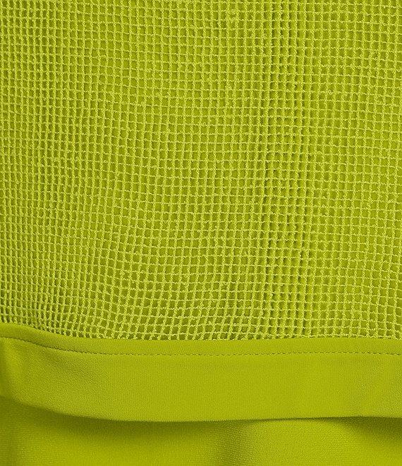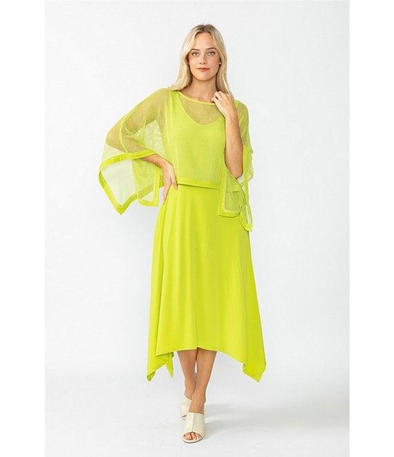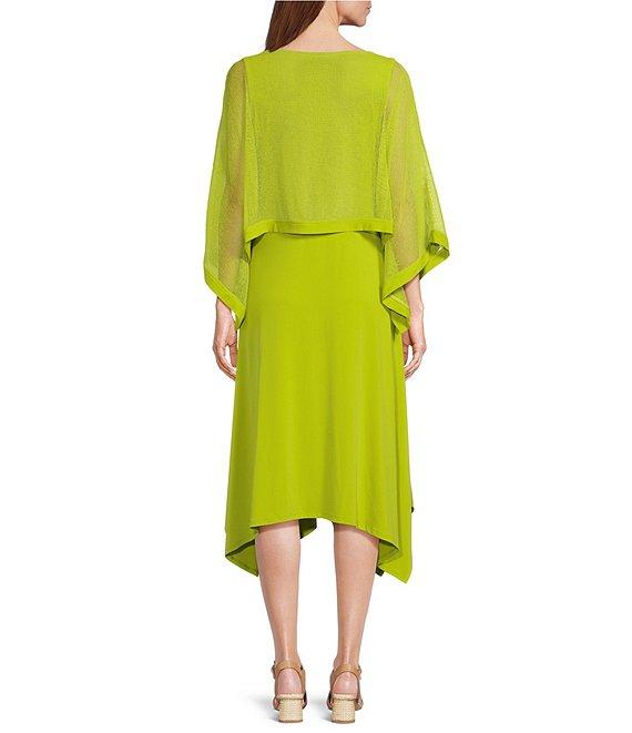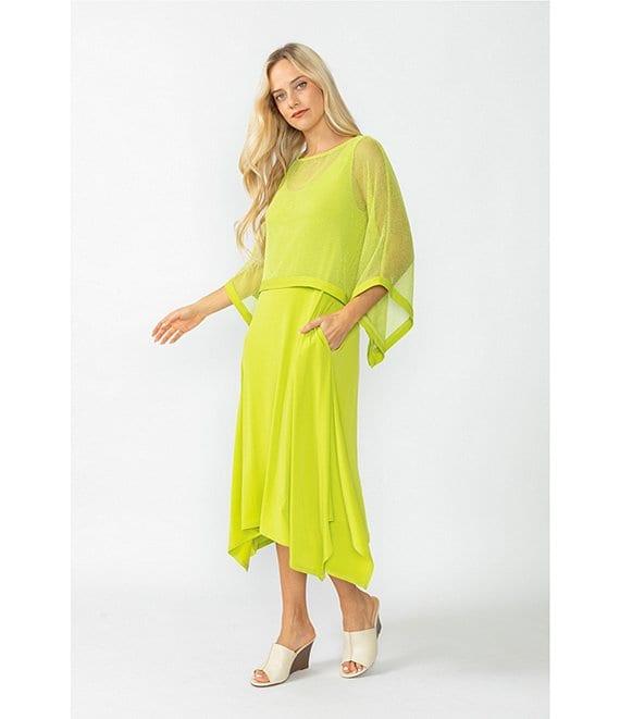 From IC Collection, this dress features: Knit fabrication Mesh overlay Scoop dress neckline Boat overlay neckline Sleeveless dress 3/4 sleeve overlay Handkerchief hem Pullover construction Approx. 40.5" length Polyester/spandexHand wash Made in the USA.