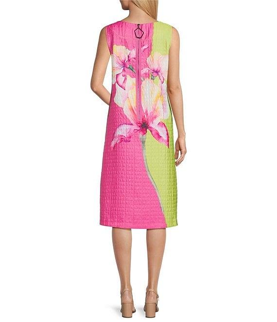 IC Collection Textured Watercolor Flower Print Boat Neck Sleeveless Midi Shift Dress