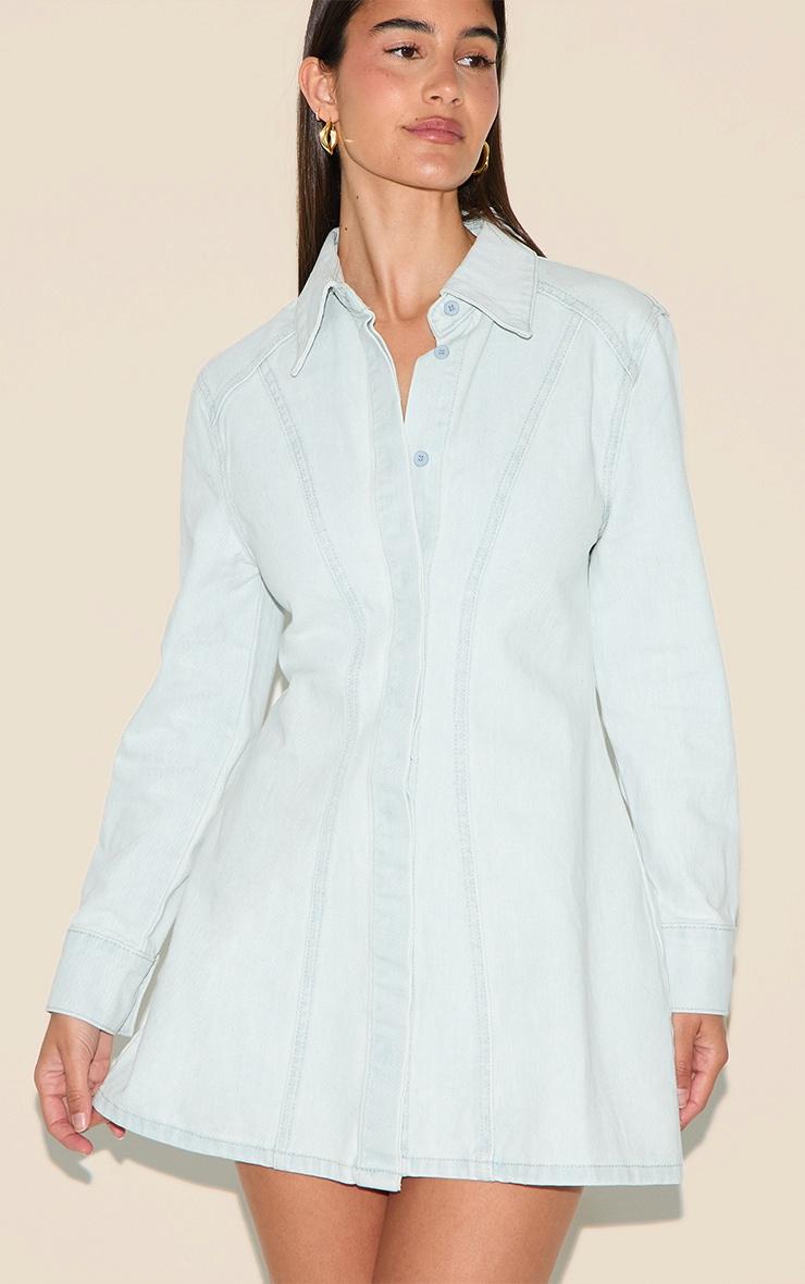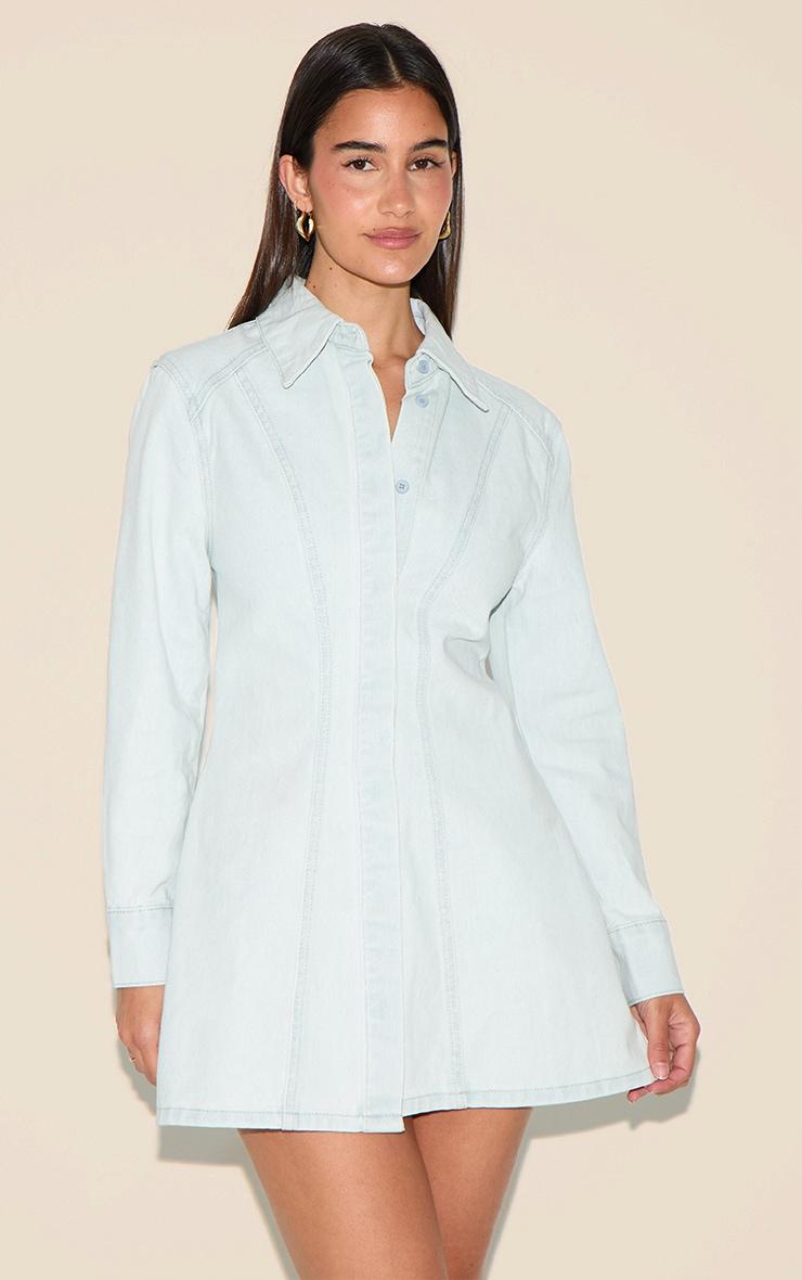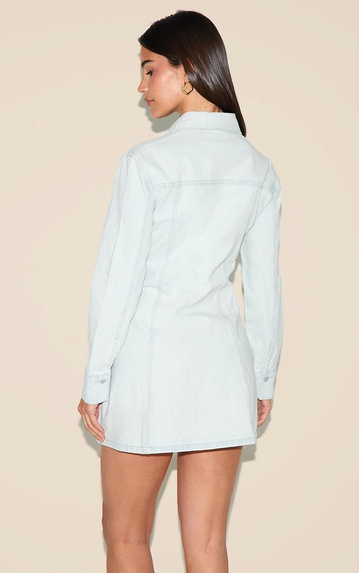 The ice blue long sleeve cinched waist denim shirt dress is the perfect addition to your Spring wardrobe. Crafted from ice blue denim, this dress features a shirt style design with long sleeves. Style it your way – add your favorite heels and jewelry for a look we're loving.Length approx 81.5cm/32inch (Based on sample size US 4)Model wears size UK 8/ EU 36/ AUS 8/ US 4Model Height - 5ft 7inchp]:!mb-4inch>Brand: PrettyLittleThingCategory: DenimProduct type: Denim Day DressColor: Ice BlueMaterial: Rigid DenimDesign: PlainSleeves: LongOccasion: Day