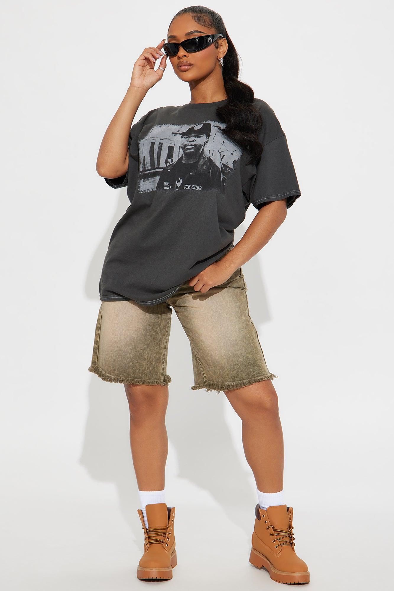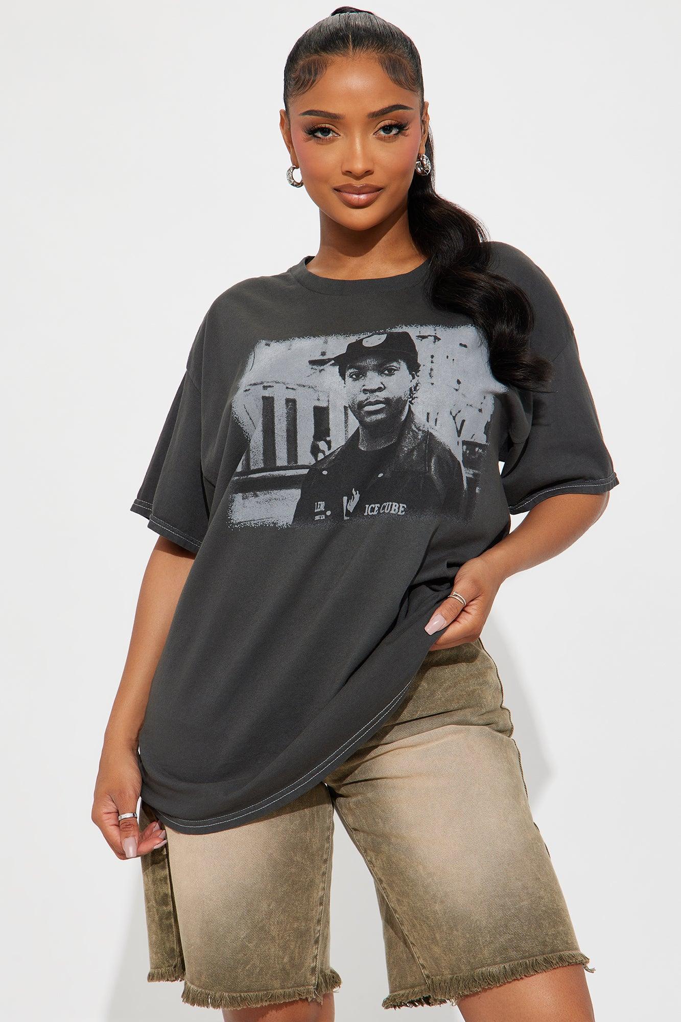 Ice Cube Portrait Washed Oversized Tee - Black Female