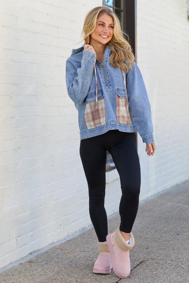 Details Fabric has no stretch Drawstring hood Functional pockets Quarter zip Material and Care 100% cotton Machine wash cold, hang dry Size and Fit Size Small approximate measurements. Length: 21"