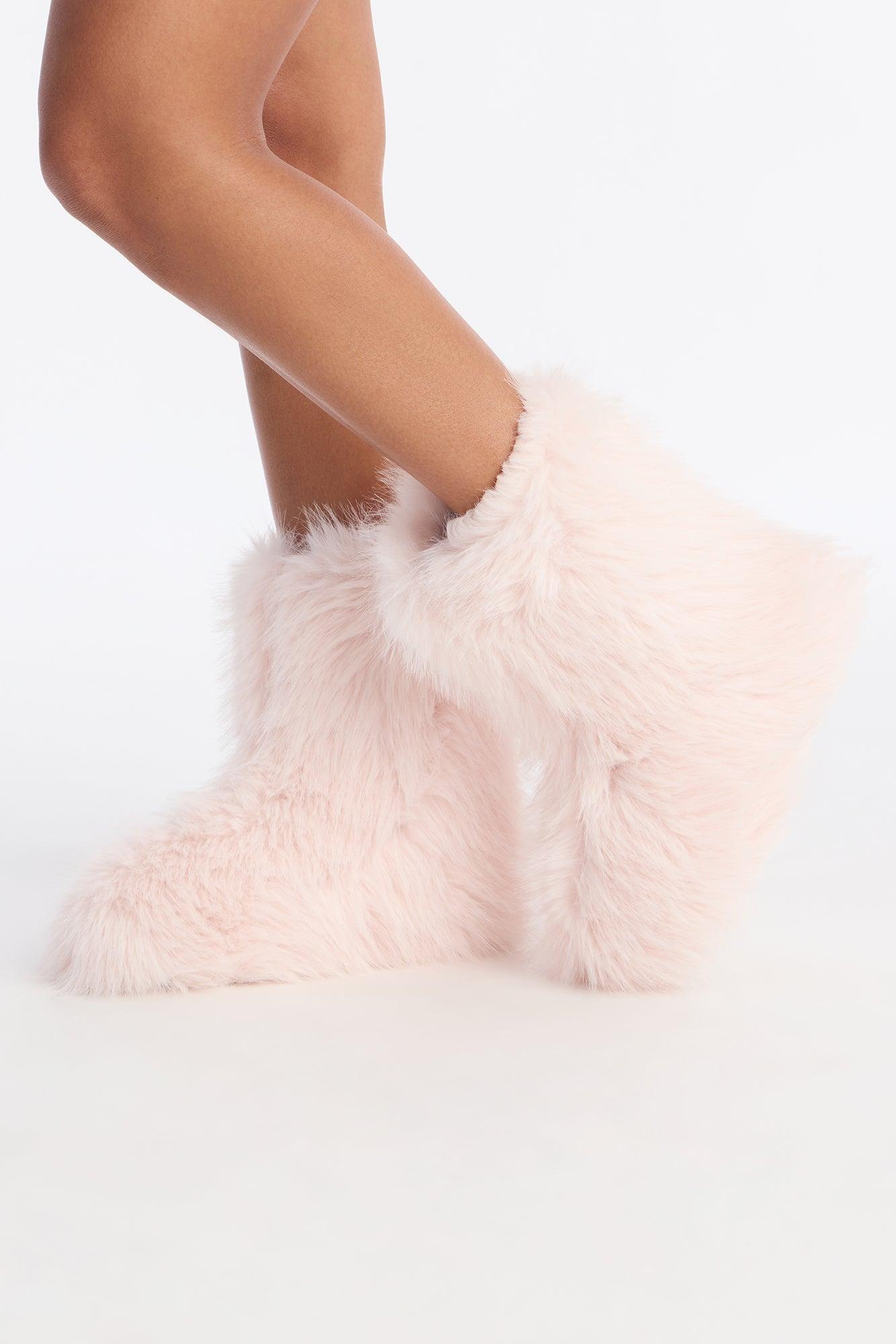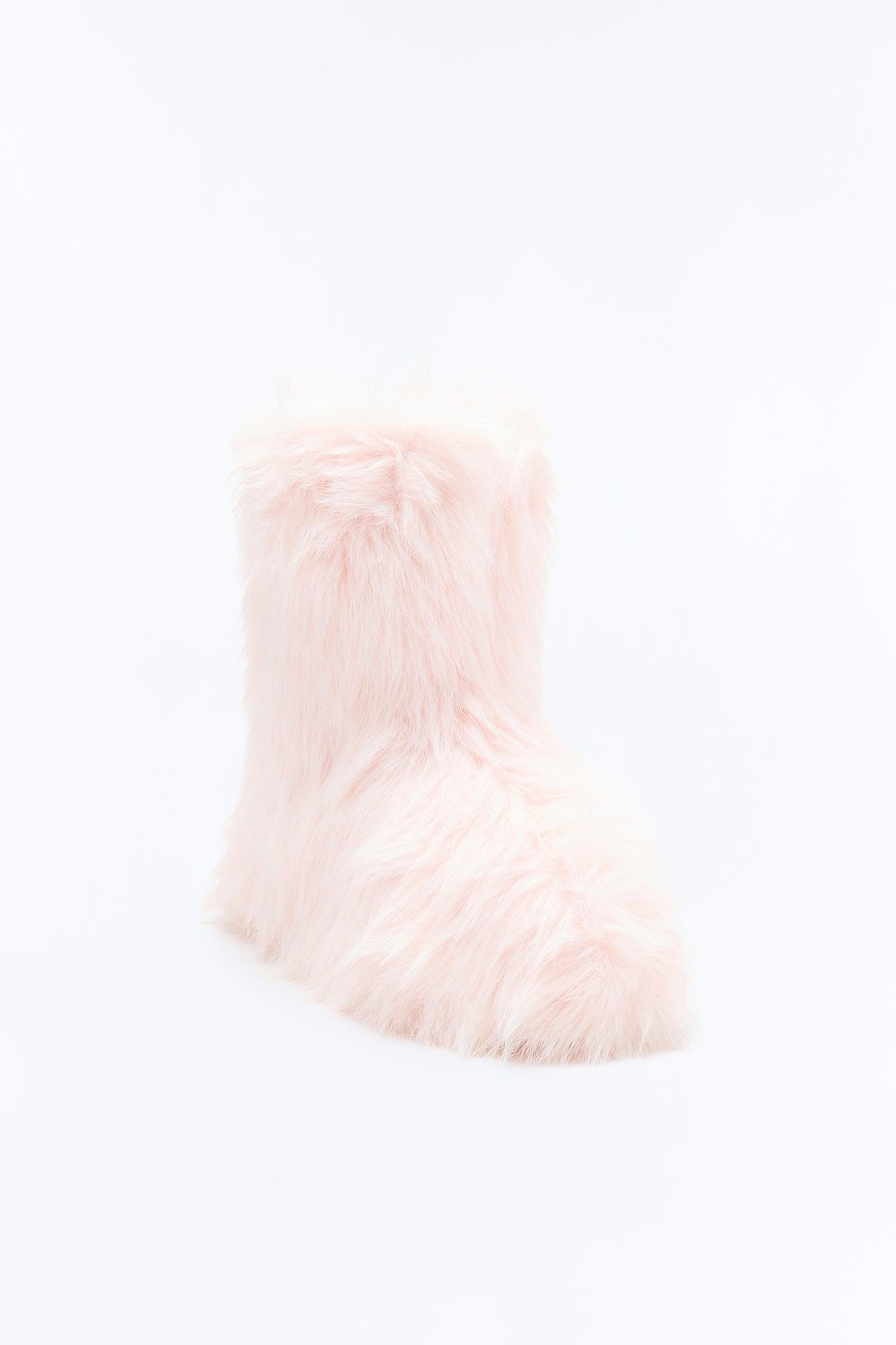 Available In Beige And Pink. Booties Faux Fur Round Toe Flat Heel Imported California Proposition 65WARNING: Cancer and Reproductive Harm - www.P65Warnings.ca.gov.