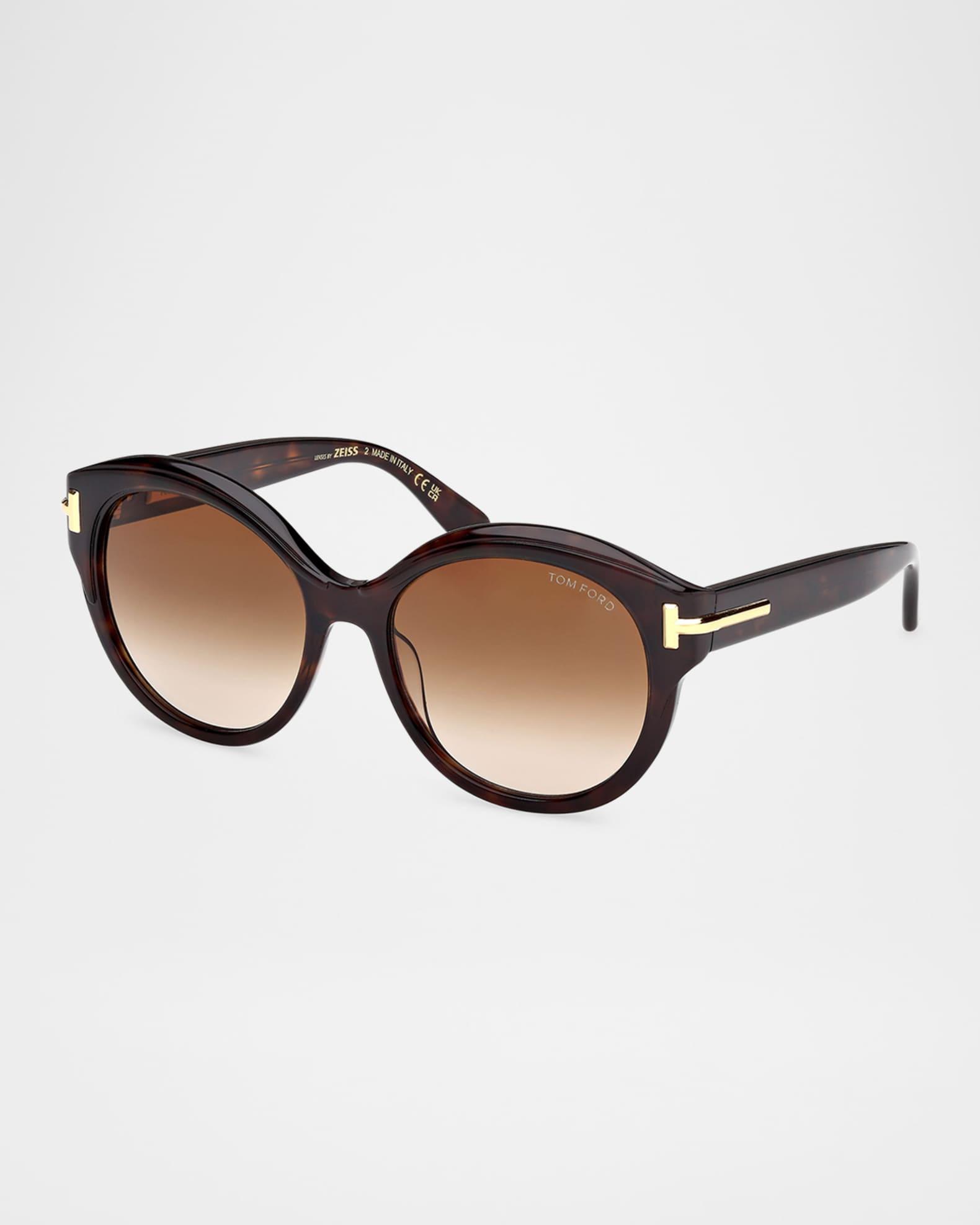 TOM FORD round acetate sunglasses from the Icon collection Eye/bridge/temple (in mm): 57-18-140 Solid lenses Saddle nose bridge Thin, tapered arms Signature T hinges Acetate 100% UVA/UVB protection Made in Italy Proposition 65 warning for California residents