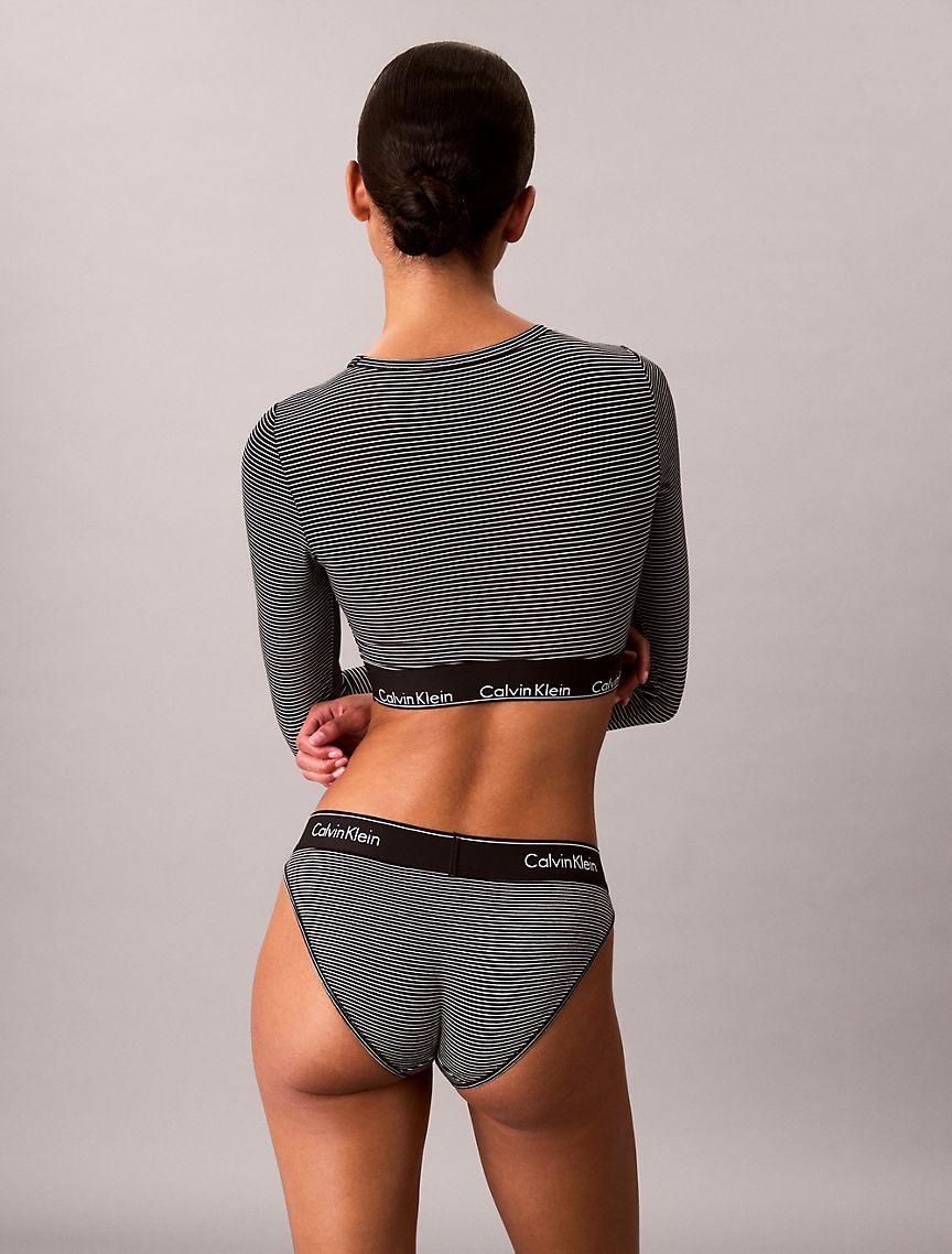 A Calvin Klein icon. This t-shirt bralette is the definition of effortless. Cut in a form-fitting silhouette, this bralette is styled with long sleeves and a crewneck. Made with super soft and supple cotton stretch for all day comfort. Designed with the original Calvin Klein logo band, this is a sporty look that feels sexy everyday.