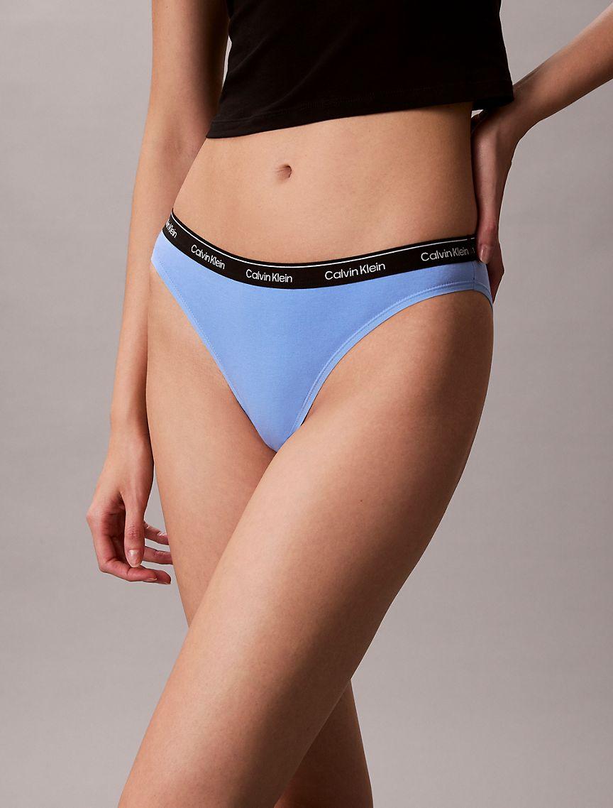 Iconic comfort for every day. Capped with modern logo styling and crafted from extra soft cotton stretch for enduring, breathable comfort. This Calvin Klein low rise thong bikini is made with our slim iconic waistband for a flexible fit.