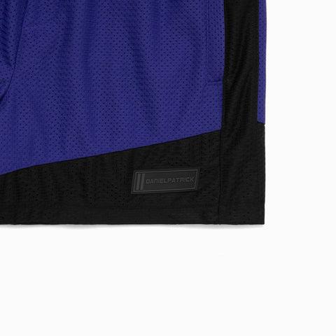 - 100% double-layered polyester- Contrast paneling- Elasticated waistband- Cotton flat draw cord with metal tips- Zip closure at side hem pockets and back pocket- Above the knee length- Daniel Patrick blackout motorsport rubber label at left thighFits true to size. Take your normal size.