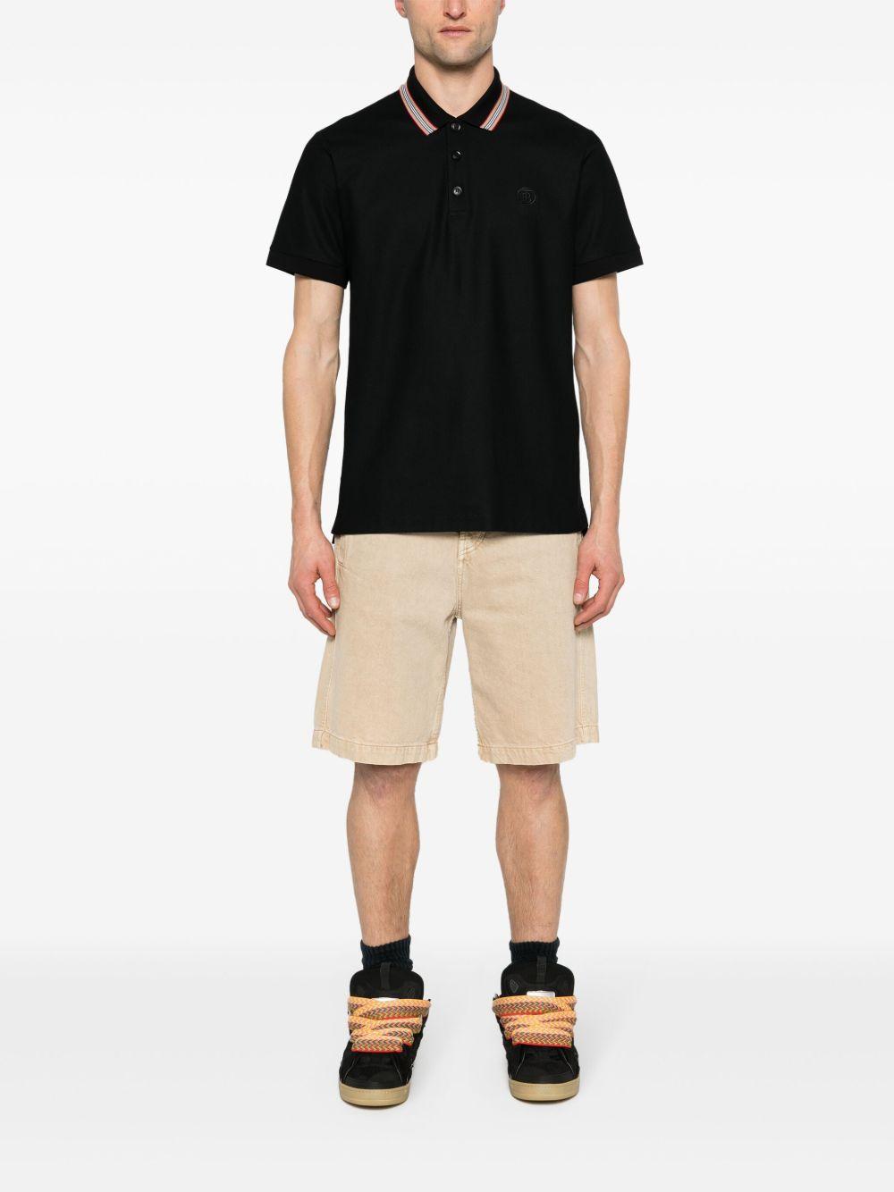Burberry Icon stripe cotton polo shirt | Black | black | cotton | piqué weave | signature Icon stripe | polo collar | short sleeves | front button placket | embroidered logo at the chest | short side slits | straight hem | Cotton | Polo Shirts | Clothing | Men