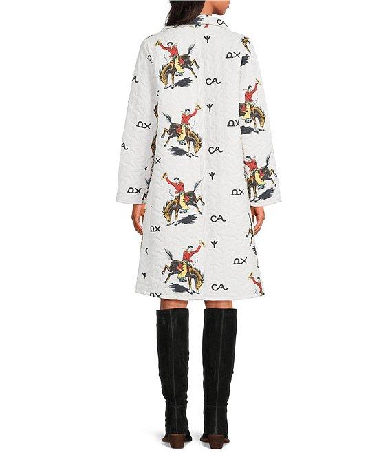 From Ida Mae Home, this jacket features: Linen fabrication Contrasting print interior Cotton fill Fold down collar Long sleeves 2 front fold pockets Mid length Open front Approx. 40" body length, 25" sleeve length Polyester/cotton Machine wash cold/tumble dry low Imported.
