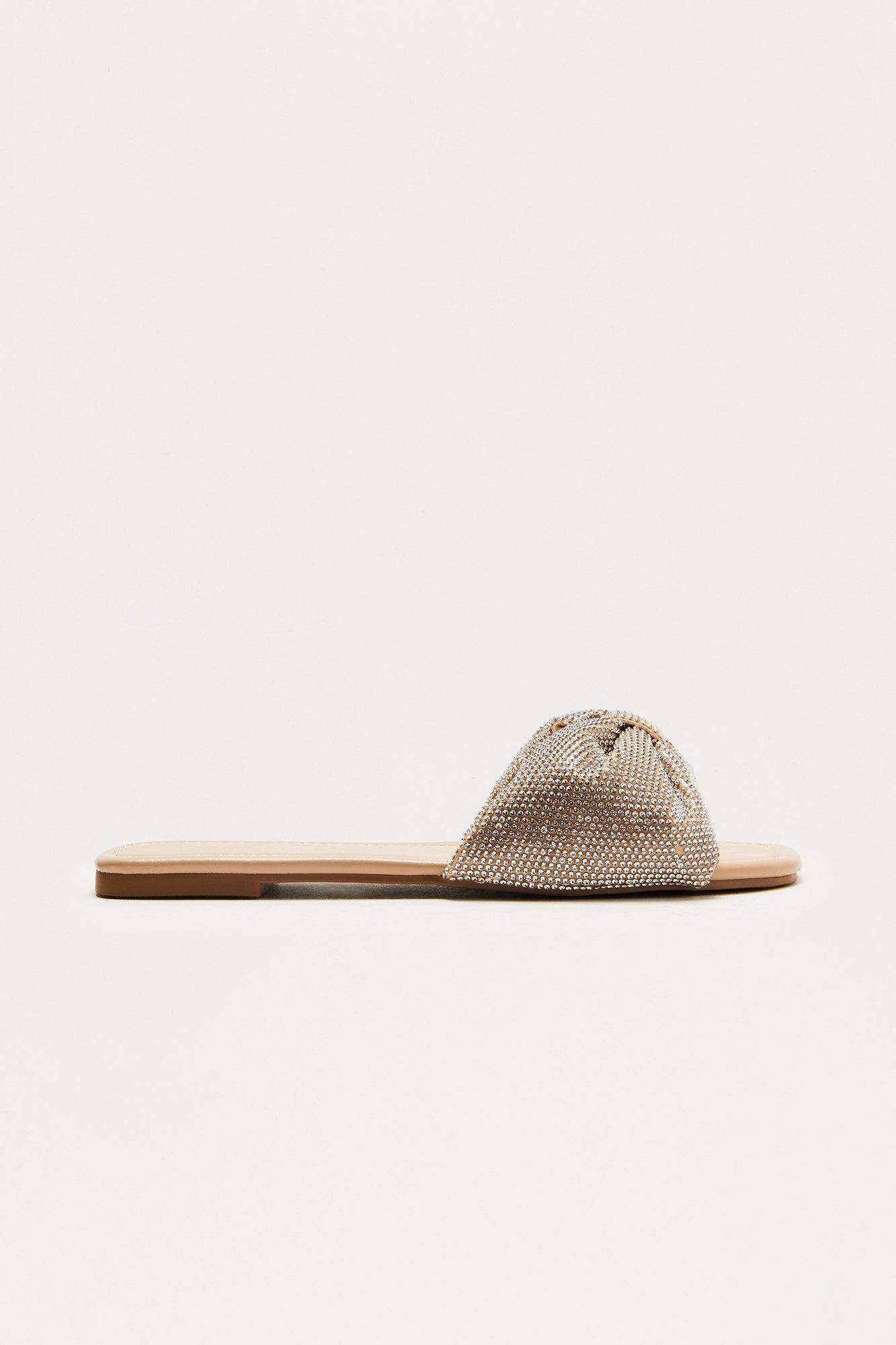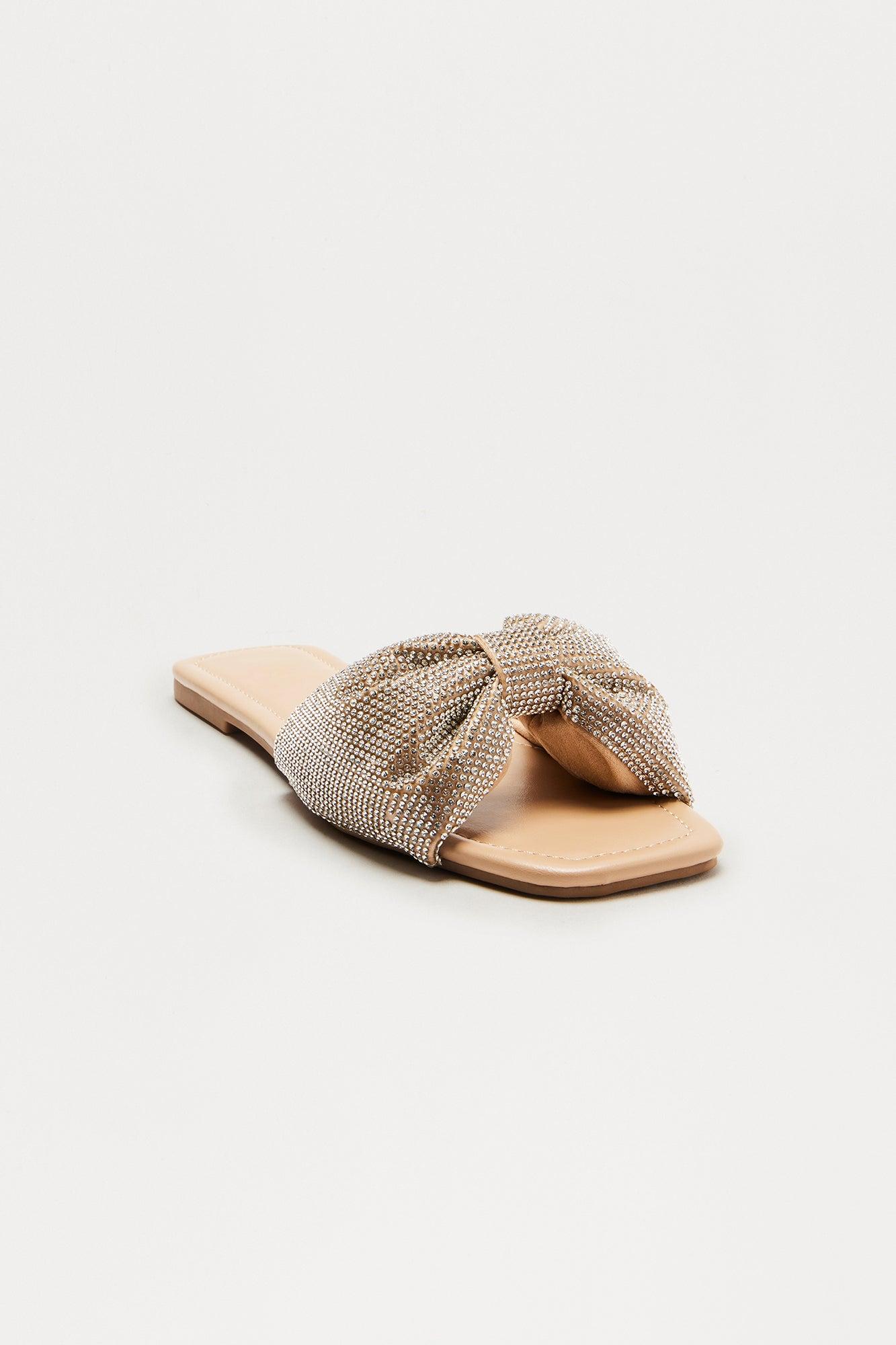 Idra Rhinestone Slip On Sandals - Camel