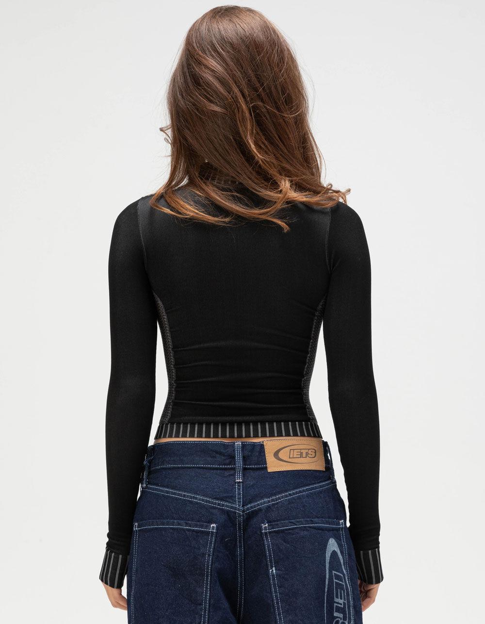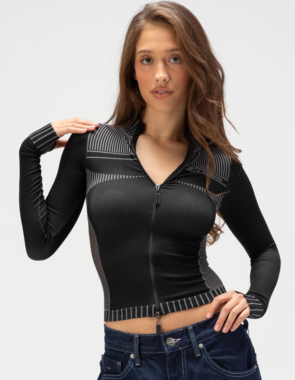 IETS FRANS Lara Womens Zip-Up Long Sleeve Top - BLACK