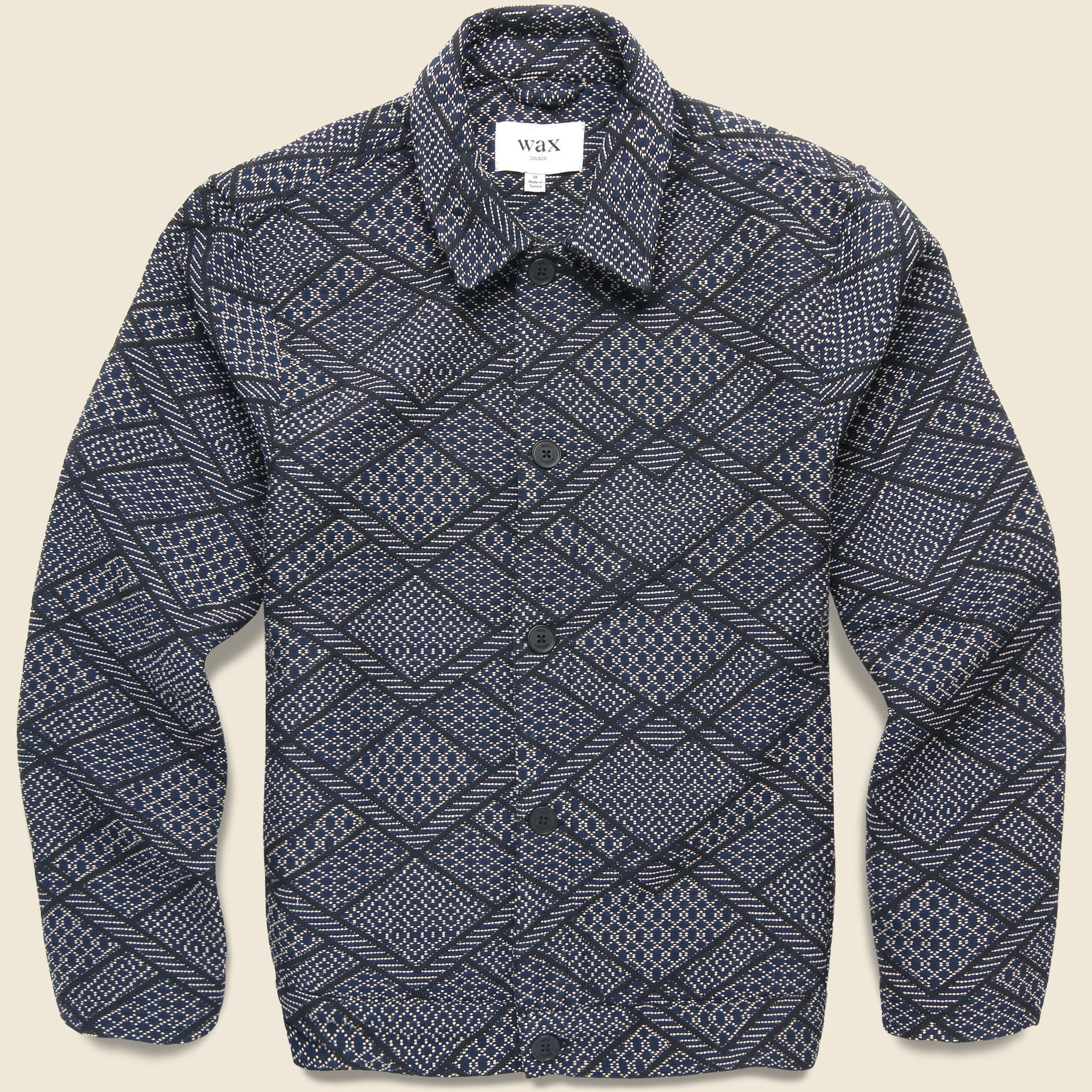 A signature piece for Wax London, this Iggy Jacket is cut from an intricately designed, exclusive diamond stitch jacquard that makes a great layering piece for year-round wear. It has a relaxed, easygoing fit that runs true to size and has a squared hem, environmentally-friendly tagua palm buttons, and a simple spread collar to top it off. Pair with the matching Kurt Trouser to complete the look.