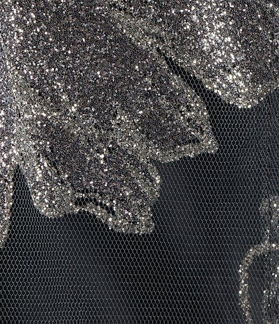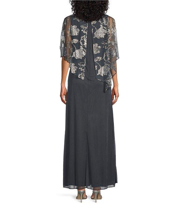 Ignite Evenings 3/4 Sleeve V-Neck Mesh Caplet Gown