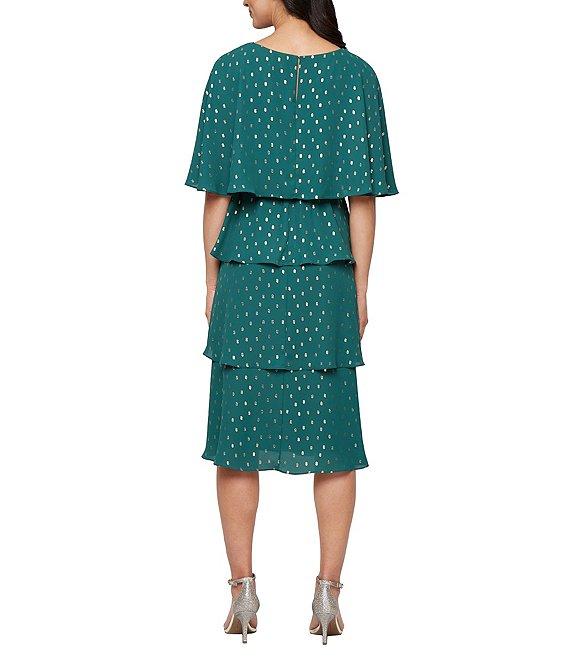 Ignite Evenings Chiffon Tea Length Tiered Foiled Dot Dress