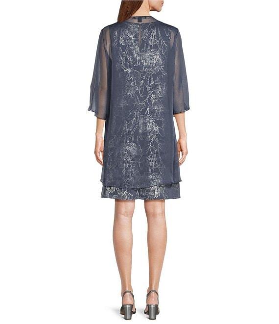 From Ignite Evenings, this two piece set features: Jacket: Chiffon fabrication Cascade detail Removable jacket 3/4 sleeves Pull-on construction Polyester Hand wash/dry flat Dress: Chiffon fabrication V-neckline Sleeveless Foil floral print A-line silhouette Lined Center back zipper closure Approx. 36.5" in length Polyester Hand wash/dry flat Imported.