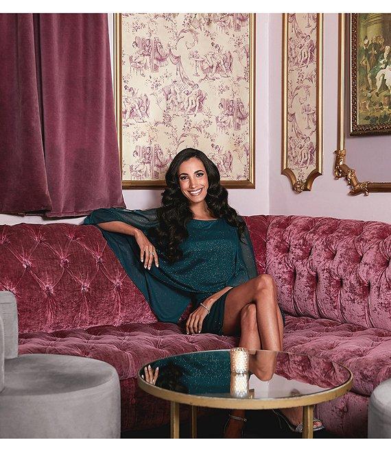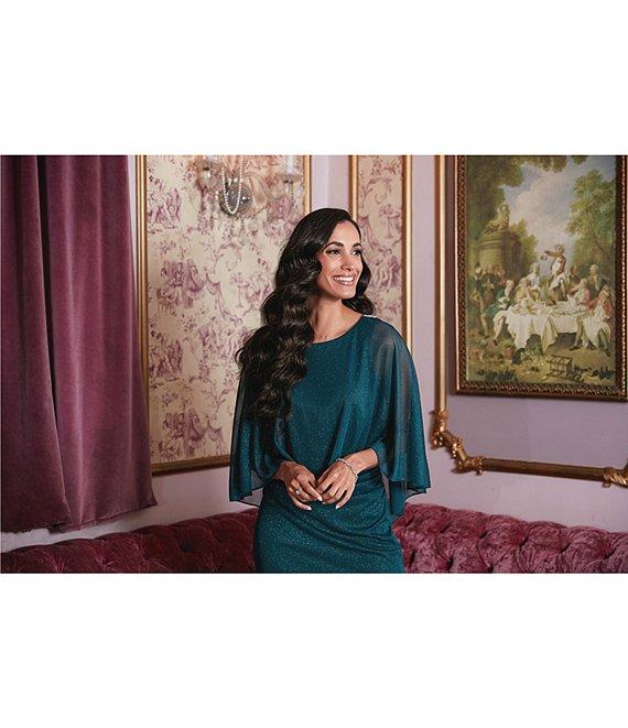 From Ignite Evenings, this dress features: Glitter mesh fabrication Scoop neckline Capelet sleeve Sheath silhouette Overlay bodice Embellishment detail at shoulder Lined Center back zipper closure Approx. 39" in length Polyester Hand wash/dry flat Imported.