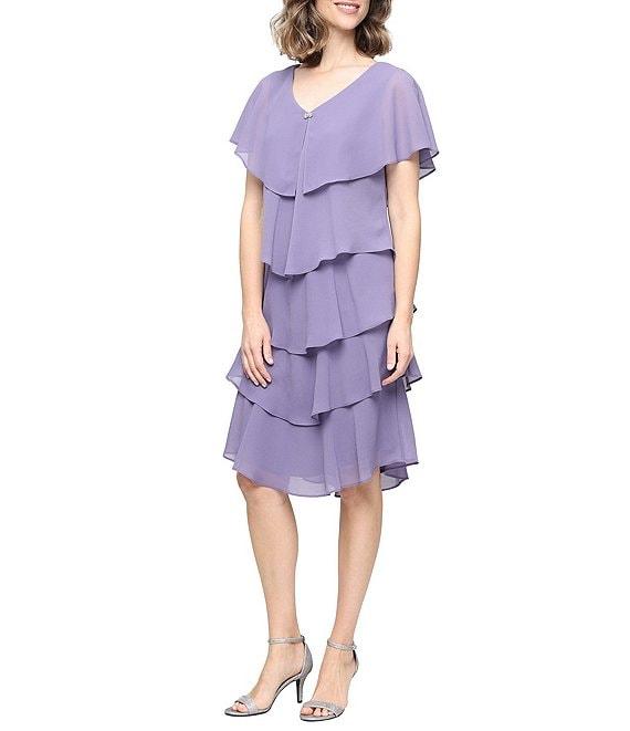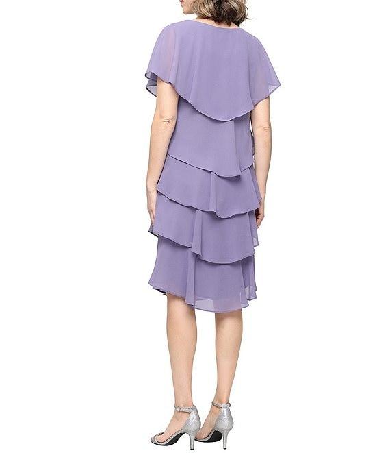 Ignite Evenings Jewel V-Neck Short Sleeve Georgette Tiered Capelet Shift Dress