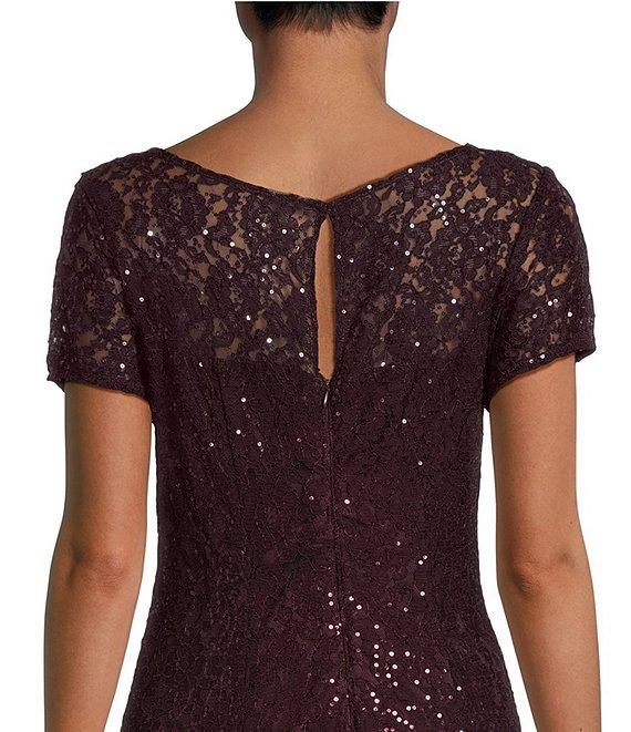 From Ignite Evenings this dress features: sequin lace fabrication crew neckline cap sleeves midi length straight hemline center back zipper closure approx. 46" length from shoulder to hem nylon/rayon Hand wash only Imported.