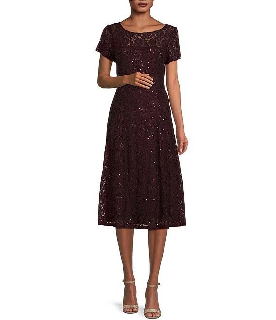 Ignite Evenings Petite Size Cap Sleeve Scoop Neck Sequin Lace A-Line Midi Dress