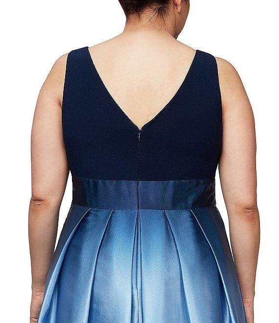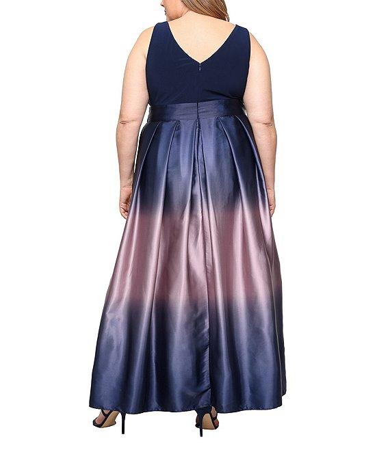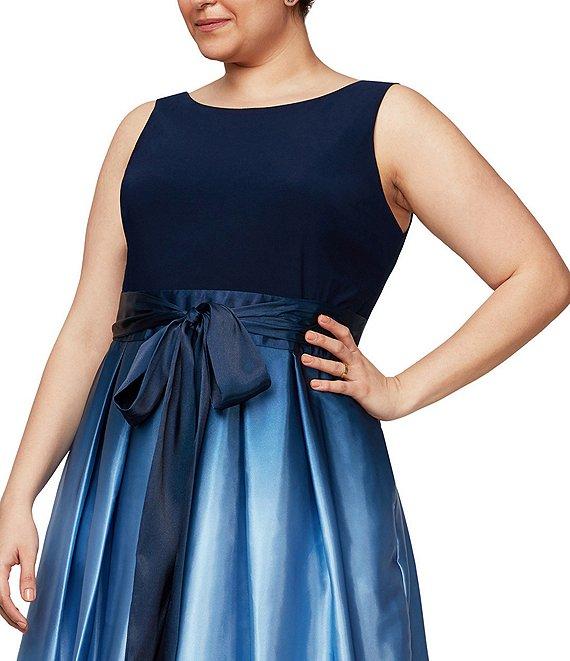 Ignite Evenings Plus Size Boat Neck Ombre Satin Bow Sleeveless Gown