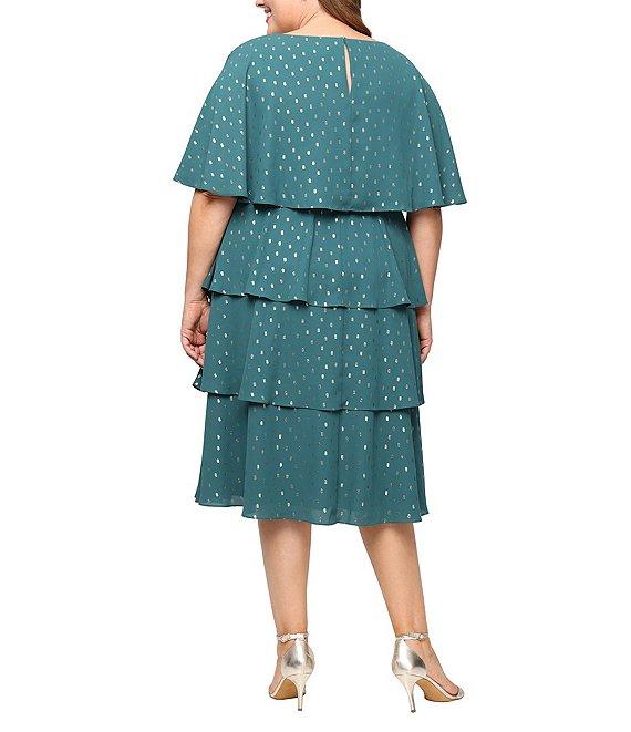 Ignite Evenings Plus Size Chiffon Tea Length Tiered Foiled Midi Dress