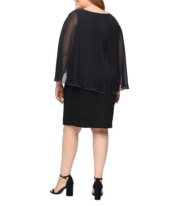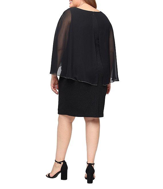 From Ignite Evenings, this dress features: Glitter knit and chiffon fabrication Sheath silhouette Crew neckline Chiffon cape overlay Beaded trim Zip back closure Approx. 38" length Polyester/spandex Hand wash Imported.
