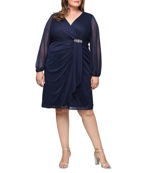 Ignite Evenings Plus Size Glitter Knit Chiffon Overlay Beaded Trim Sheath Dress