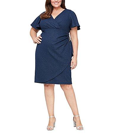 Ignite Evenings Plus Size Short Sleeve Surplice V