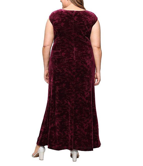 Ignite Evenings Plus Size Stretch Velvet Scoop Neck Cap Sleeve Burnout Gown