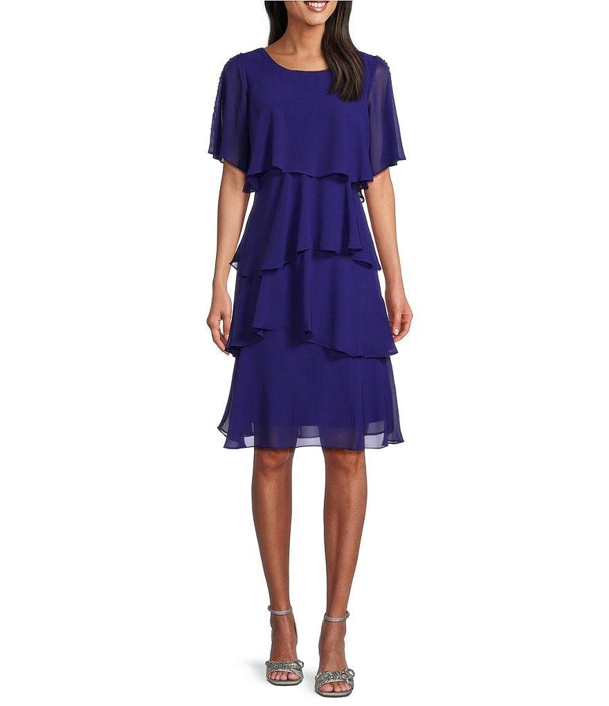 Ignite Evenings Short Sleeve Chiffon Tiered Shift Dress