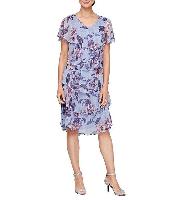 Ignite Evenings Short Sleeve V-Neck Tiered Floral Print Dress