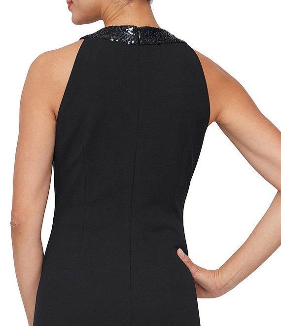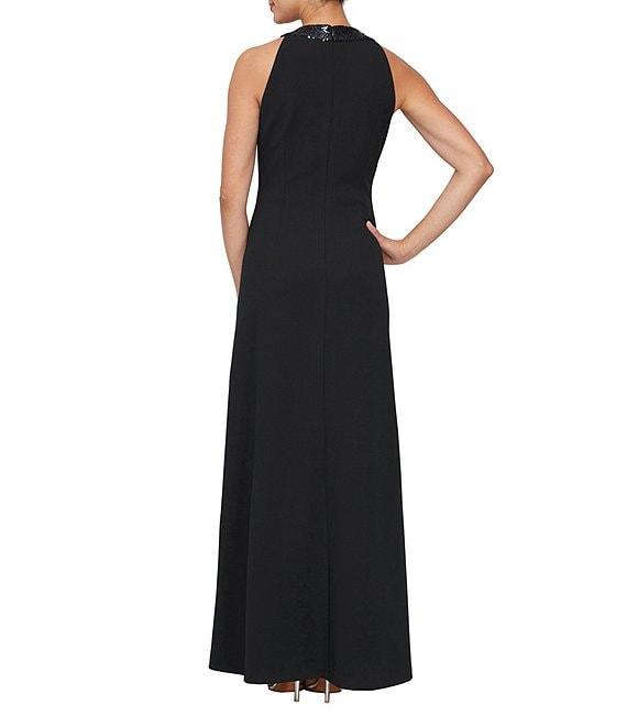 From Ignite Evenings, this gown features: Stretch crepe fabrication Sheath silhouette Sequin halter neckline Sleeveless Sequin cascade ruffle along the front Lined Center back zip closure Approx. 59" length Polyester/spandex Hand wash cold separately Imported.