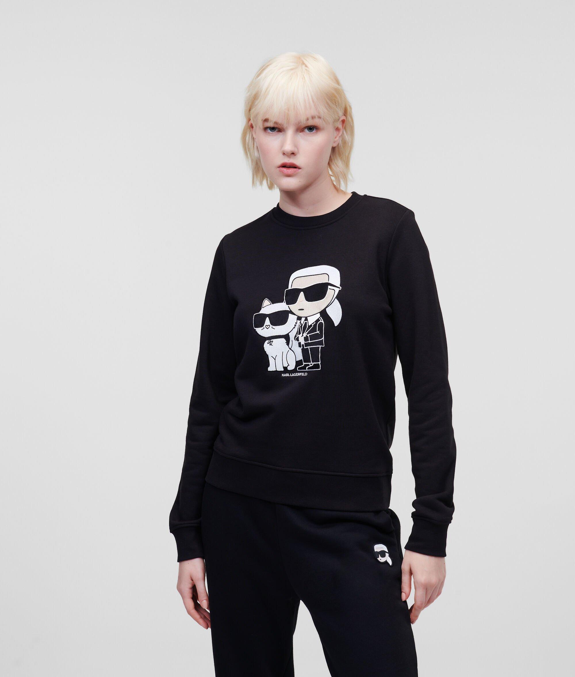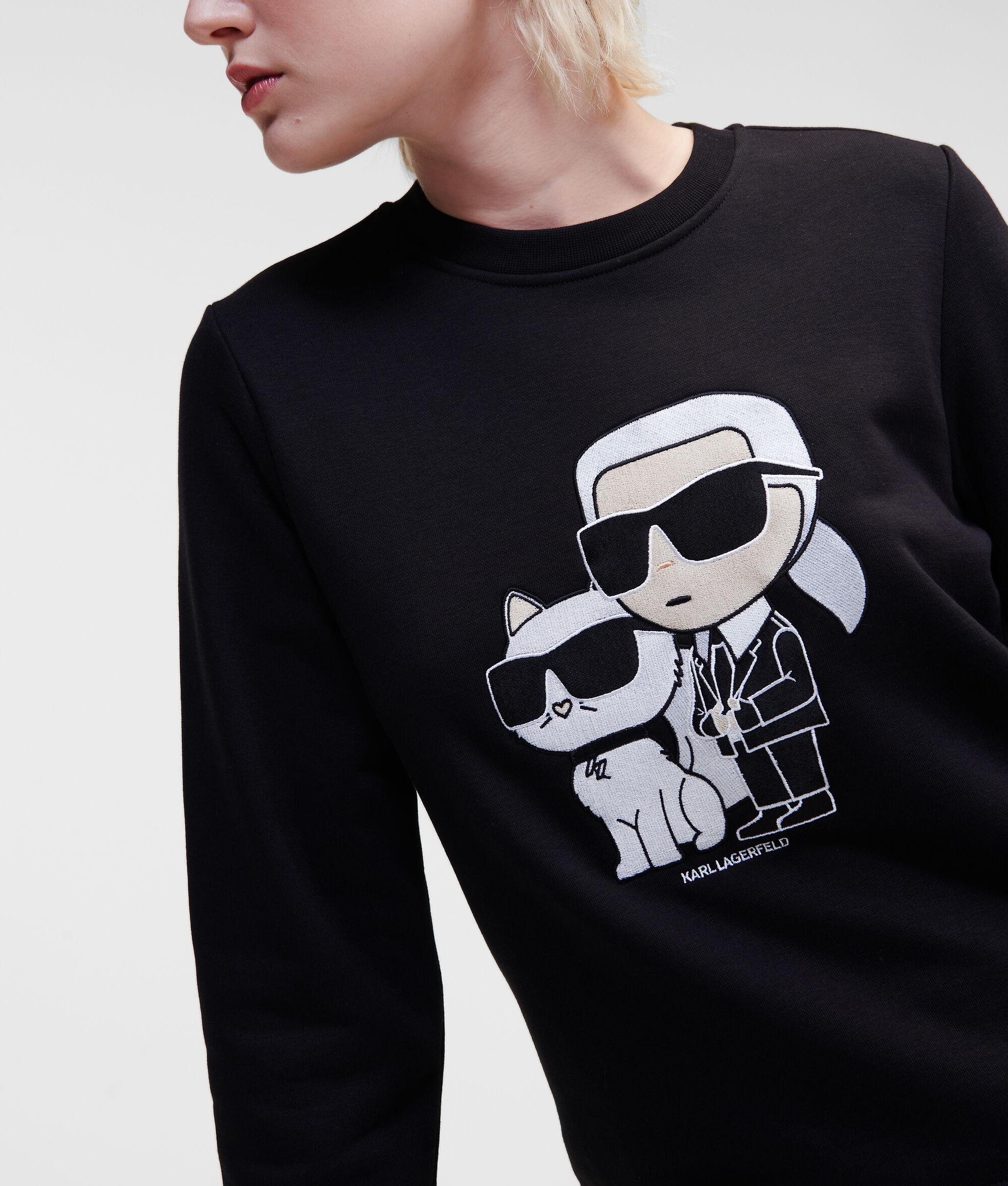 Ikonik Karl and his beloved companion Choupette feature front and center on this sustainable sweatshirt. The playful style belongs to the upgraded Ikonik collection, which sees best-selling silhouettes revamped with modernized Ikonik Karl and Choupette artwork inspired by the sell-out digital NFT collection.