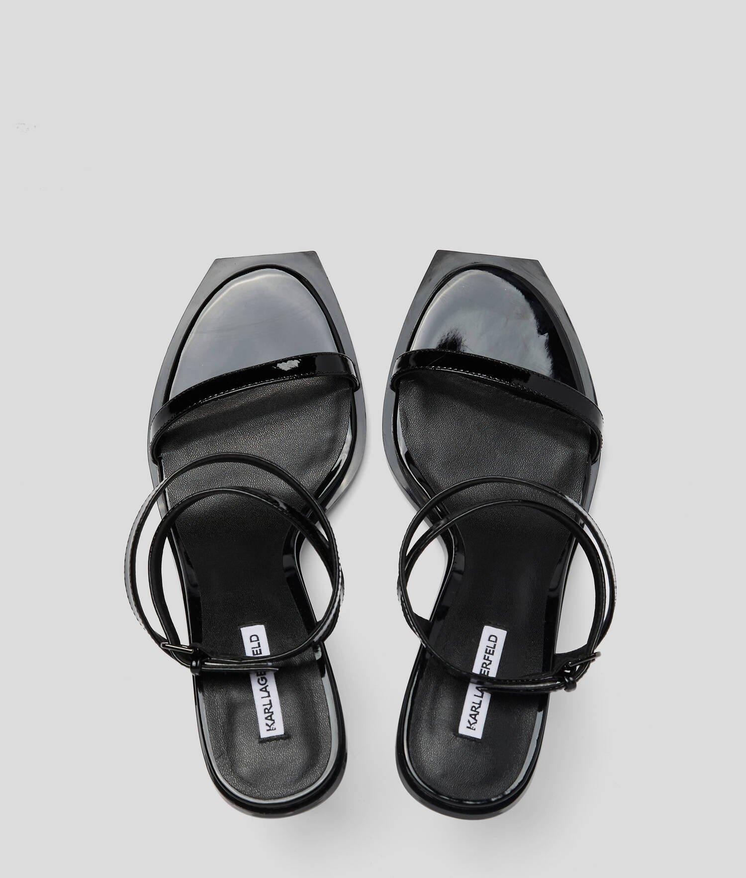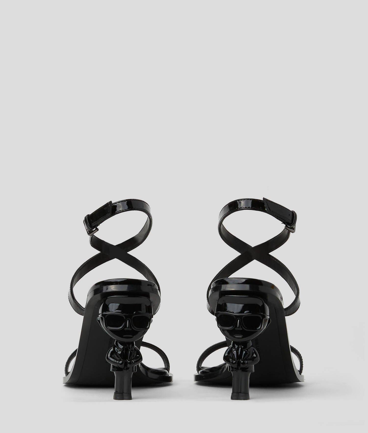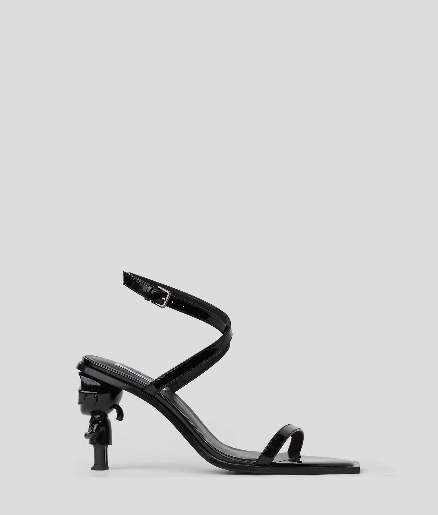 A stunning blend of playful design and modern elegance, these heeled sandals feature a sleek leather strap with an adjustable buckle for a personalized fit. The unique 3D IKON Karl molded heel adds a playful touch, while the padded footbed ensures all-day comfort.