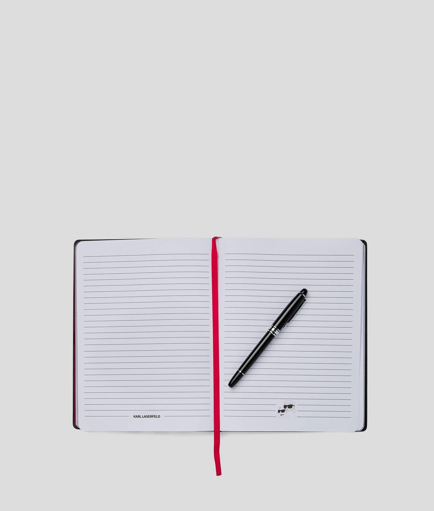 This elegant two-piece gift set features a stylish striped notebook paired with a sleek ballpoint pen. Lined pages and a red ribbon bookmark enhance the writing experience, showcasing charming IKON artwork.