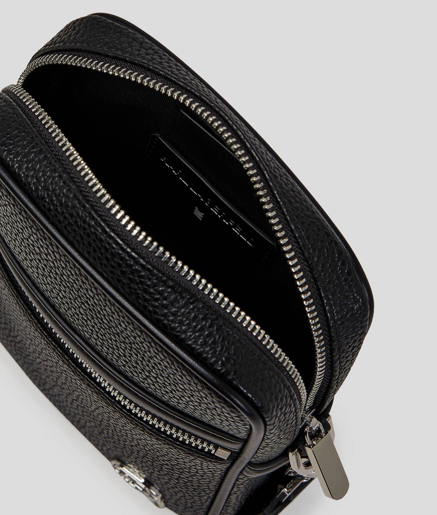 Seamlessly blending style with practicality, this contemporary crossbody bag features a two-way zip closure for secure storage and a zipped front pocket for easy access to essentials. The adjustable and detachable strap offers customizable styling, while the striking Ikon Karl hardware adds a touch of flair.