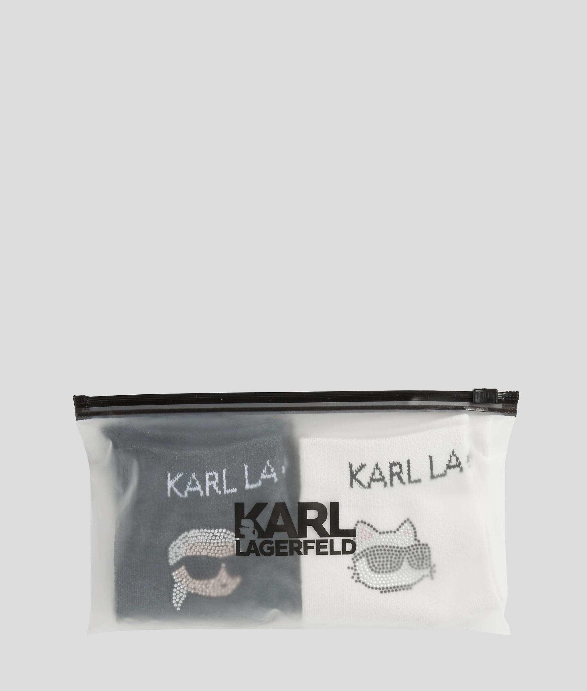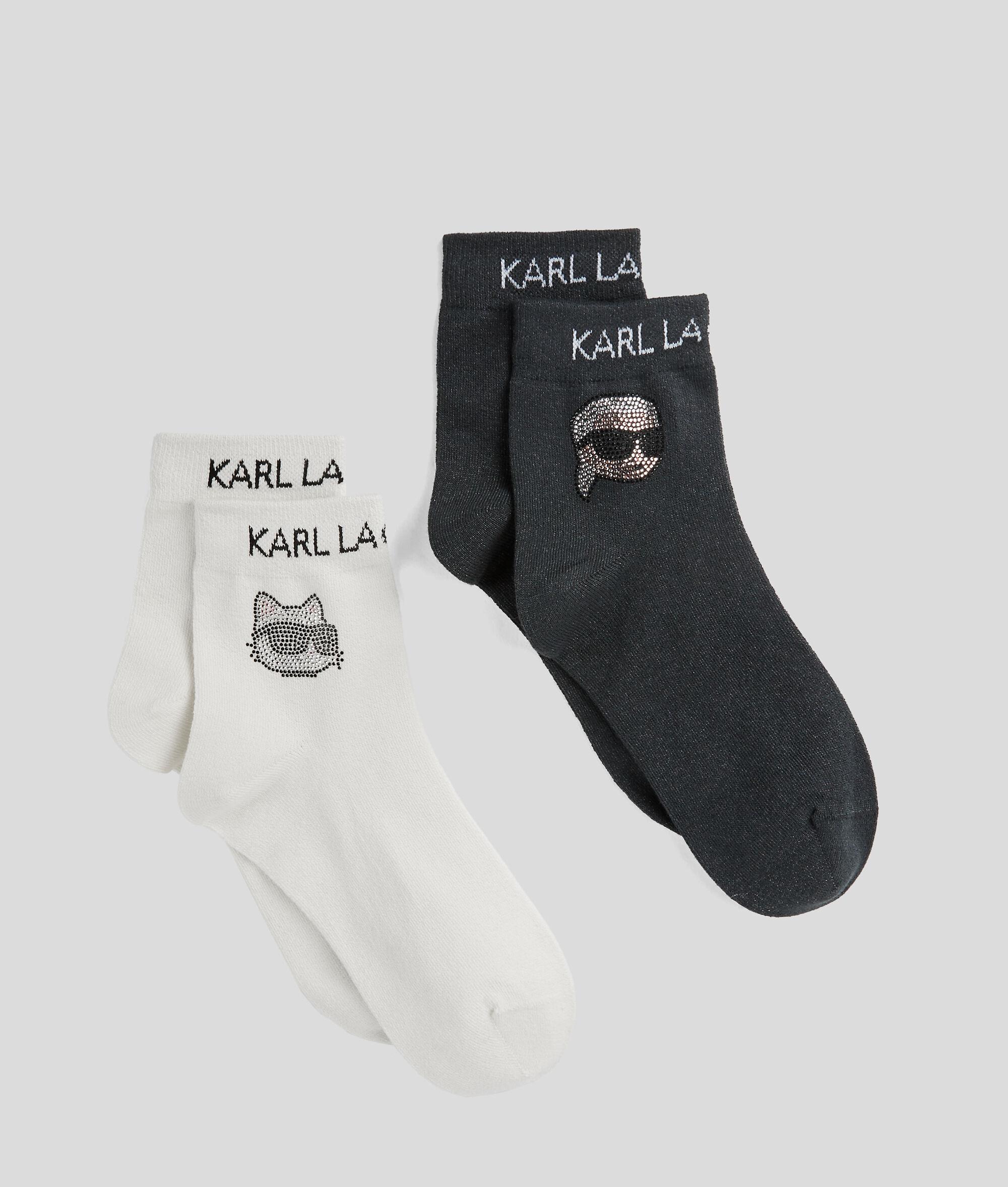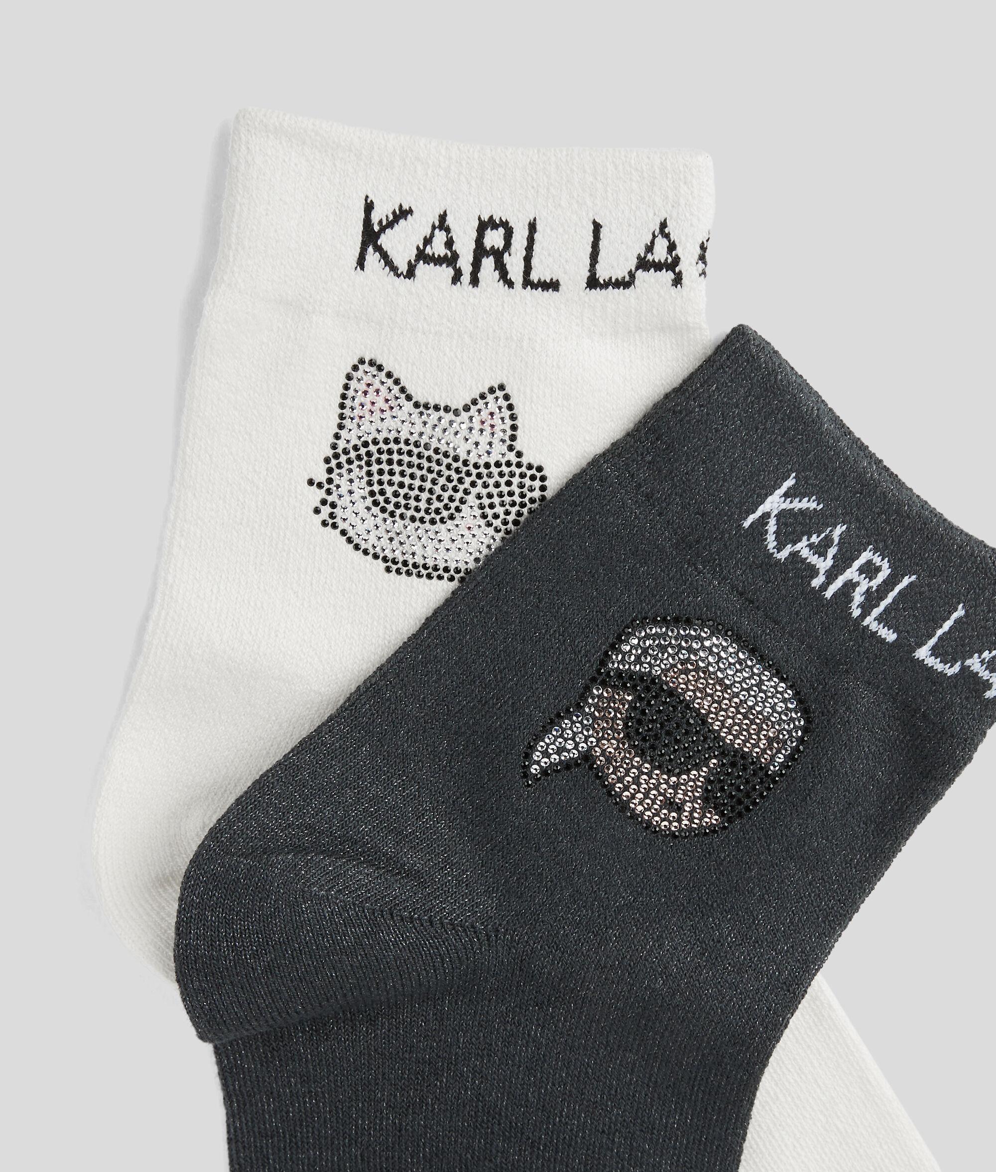 Rhinestone-embellished Ikonik Karl and Choupette artwork brings a touch of sparkle to these everyday essentials. These mid-rise socks are made from recycled cotton and are topped with a standout KARL logo cuff.
