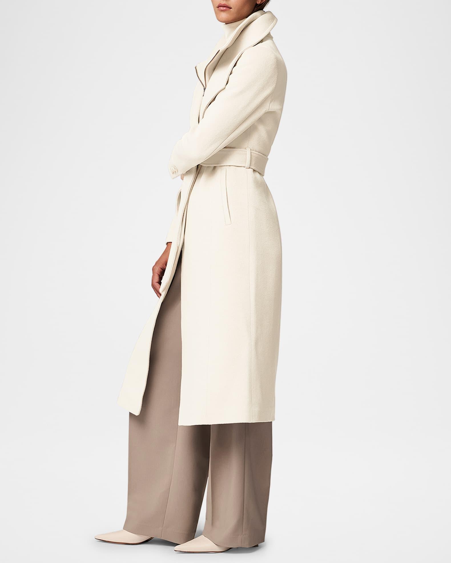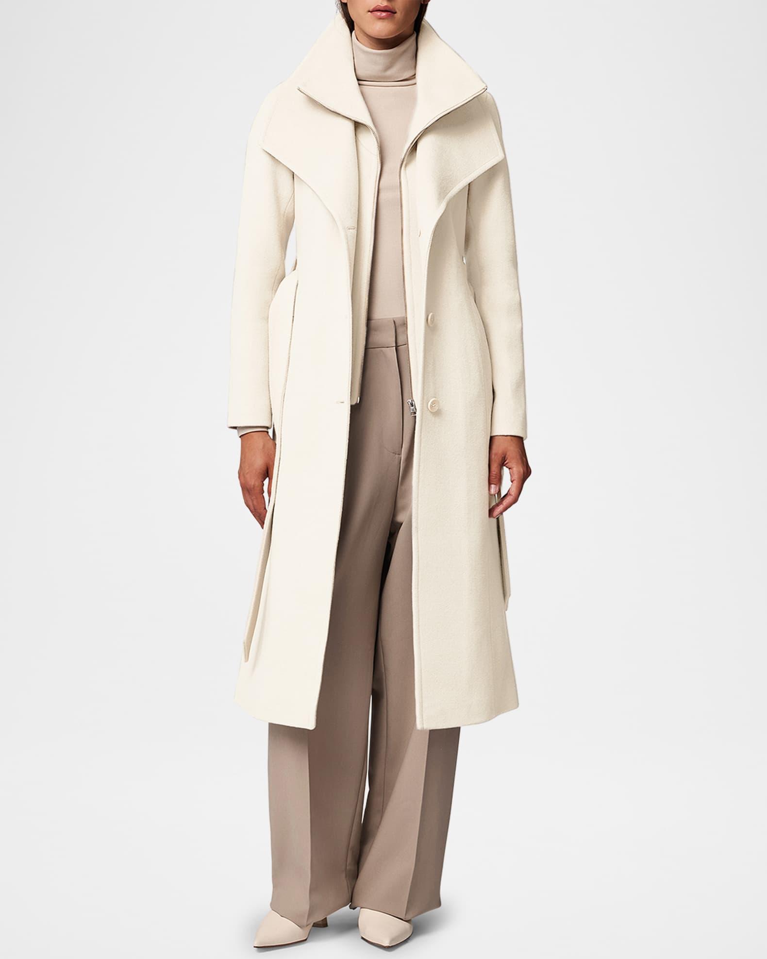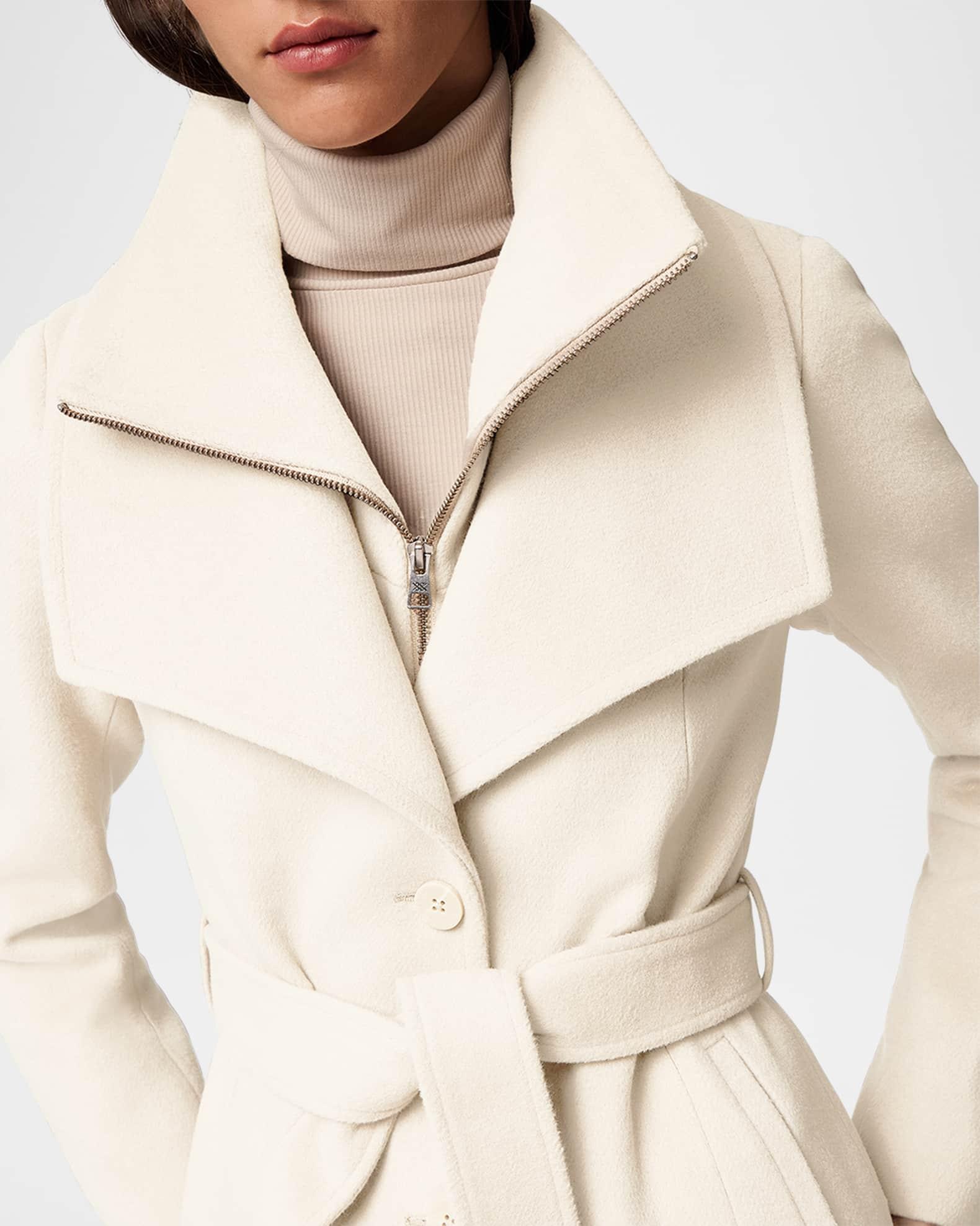 Designed with style and comfort in mind, the "Ilana-U" coat by Soia & Kyo is crafted from a soft wool-blend and features a bib with zip closure for added warmth. Stand collar; notched lapels Single-breasted front Long sleeves Detachable self-tie belt Side pockets Classic fit Hem falls below the knee Button closure Wool/polyester Lining: Polyester Dry clean Imported
