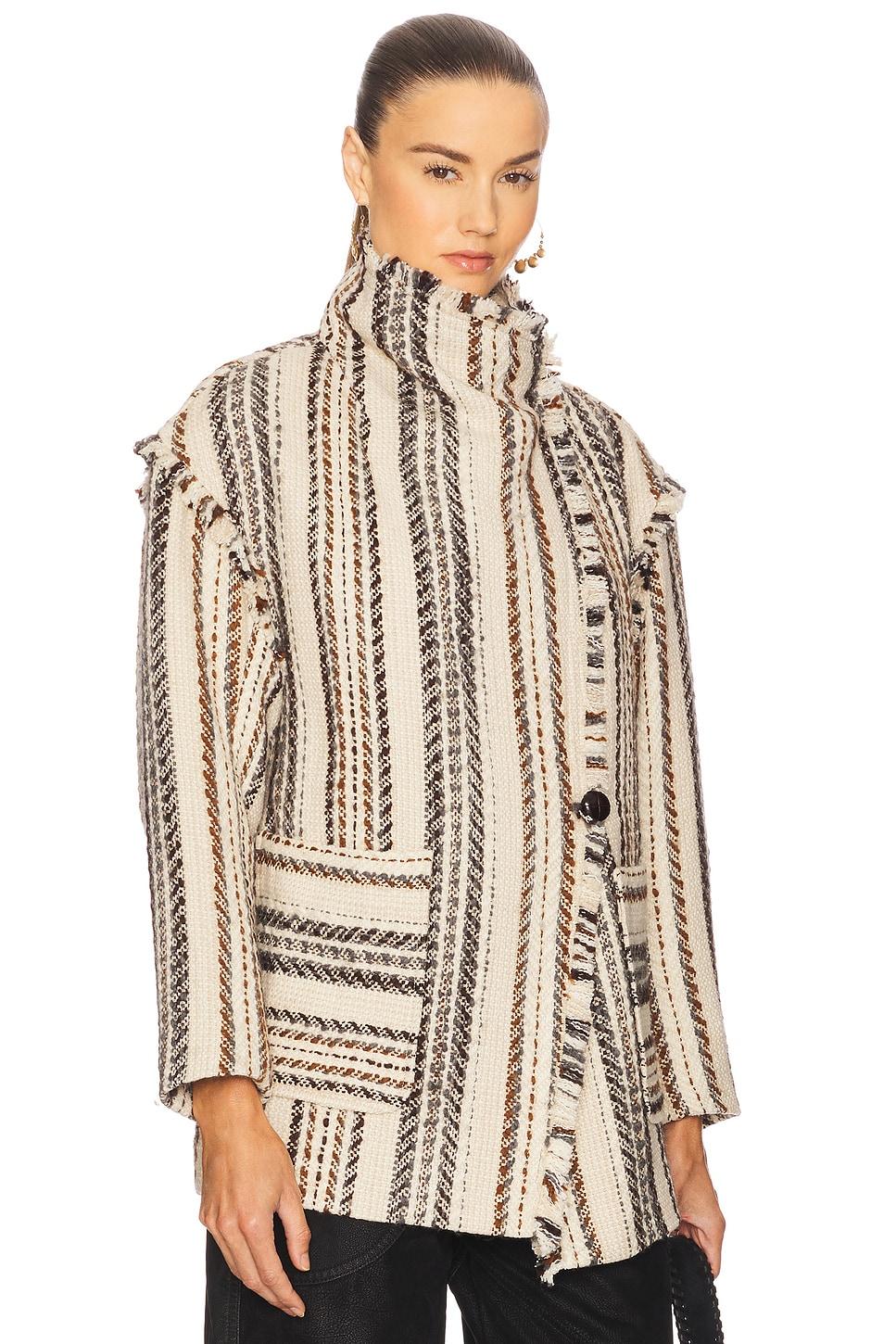 Self 1: 39% cotton, 36% acrylic, 22% wool, 3% other fibersSelf 2: 100% cotton. Dry clean only. Singular front button closure. Front pouch pockets. Tweed fabric with frayed detail. Made in Bulgaria. Revolve Style No. ISAR-WO142. Manufacturer Style No. MA0431FA-C3D01E.