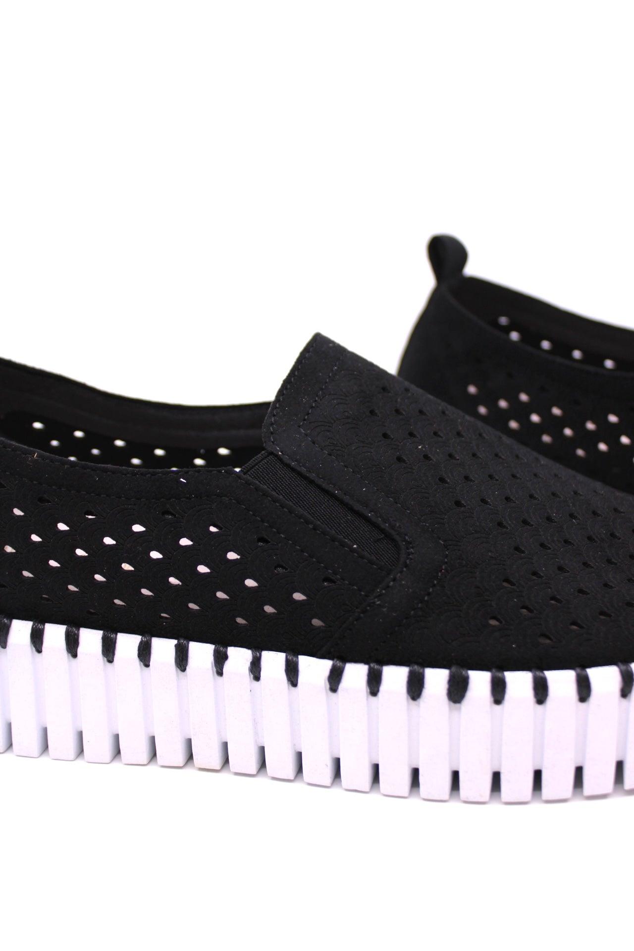Step into comfort, flexibility, and coolness with Ilse Jacobsen Tulip 141 Black. Made with recycled microfiber and a decorative laser cut pattern, these shoes are also environmentally friendly. The elastic sides and iconic Tulip outsole provide a perfect fit, while the pig suede lining and padded insole offer all-day comfort. Available in various colors, these shoes are the perfect combination of quality, fit, and style. Keep going with genuine design and no glue needed!