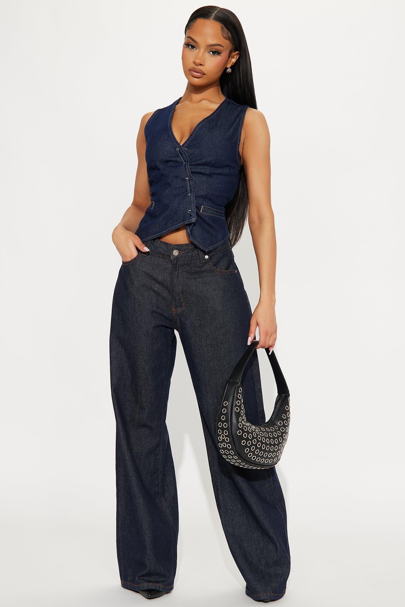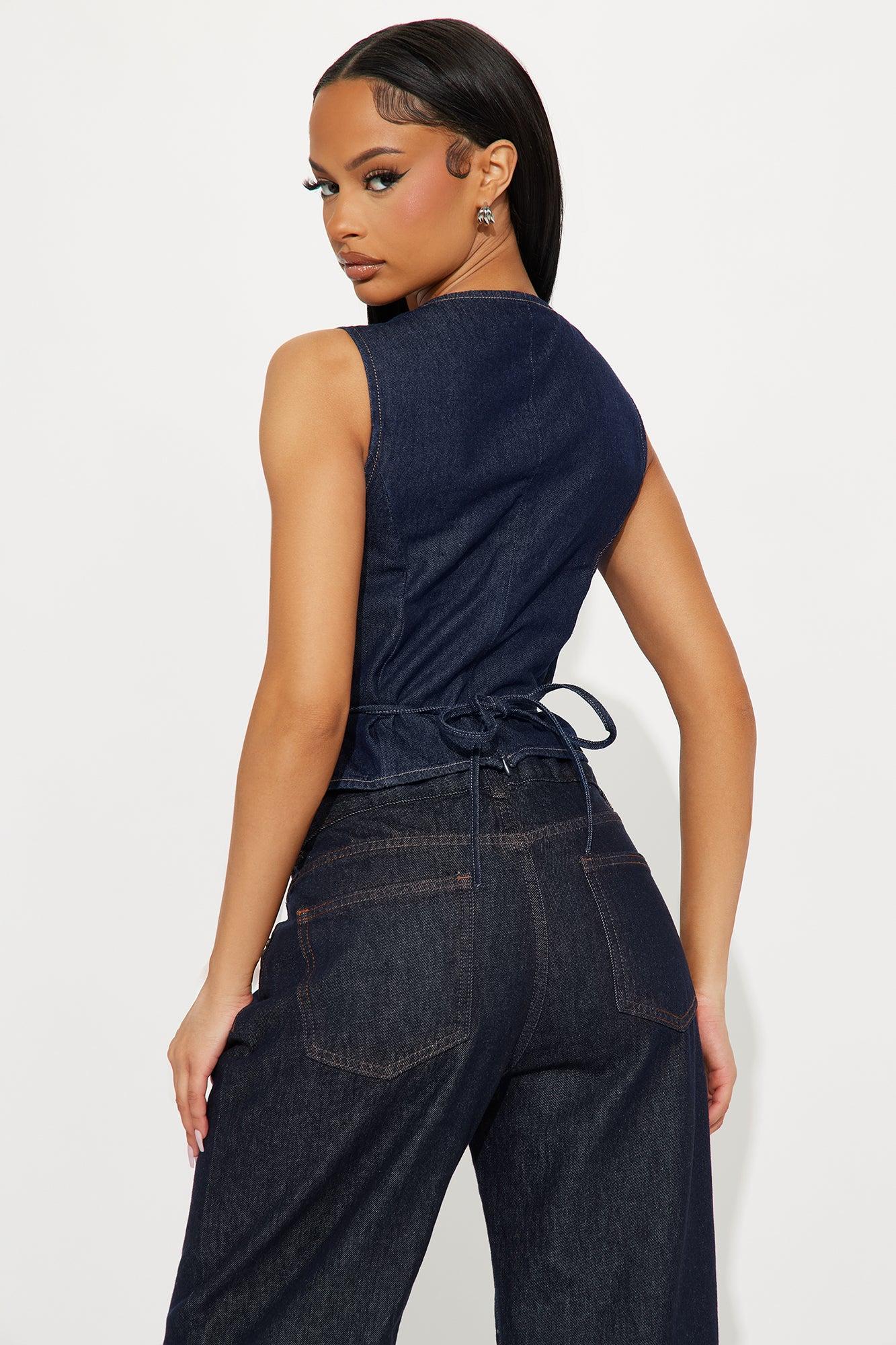 Imelda Lace Up Denim Vest Top - Dark Wash