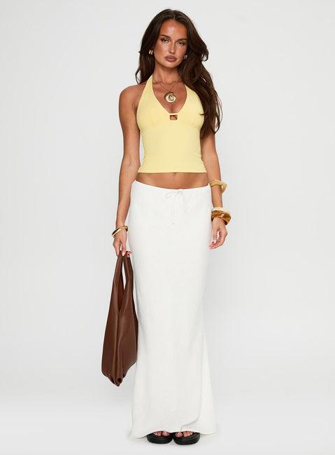 Halter top Scoop neck, cut-out detail, fixed halter strap, partial open back Good stretch, fully lined Princess Polly Lower Impact Main: 85% reclaimed nylon 15% spandex, Lining: 95% reclaimed polyester 5% spandex Cold gentle hand wash
